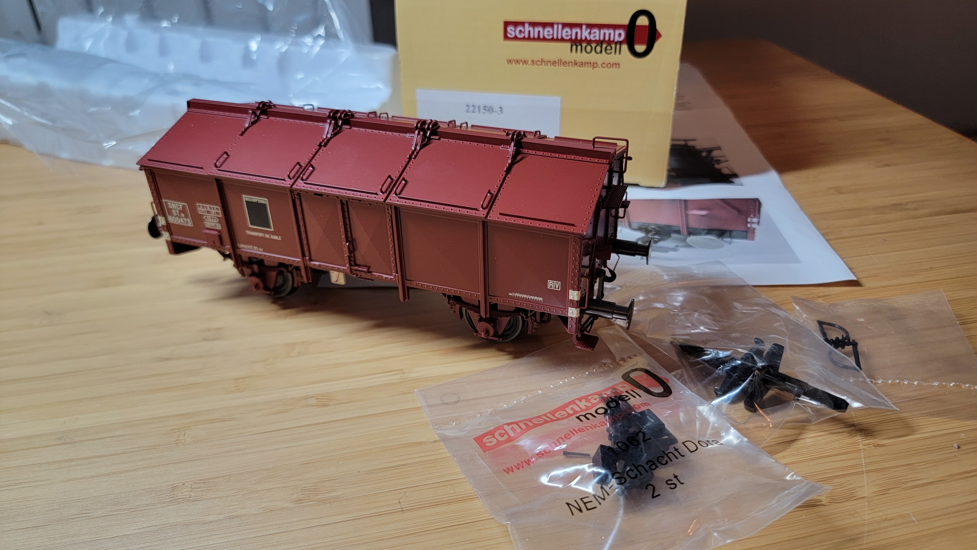 Je vends ce wagon tombereau à capots transport de sable SCHNELLENKEMP CHREZO réf: 22150-3 avec attelages à vis montés les autres présents en sachets .Strictement neuf . Prix 145 euros port compris par Mondial Relay . Contact en mp .