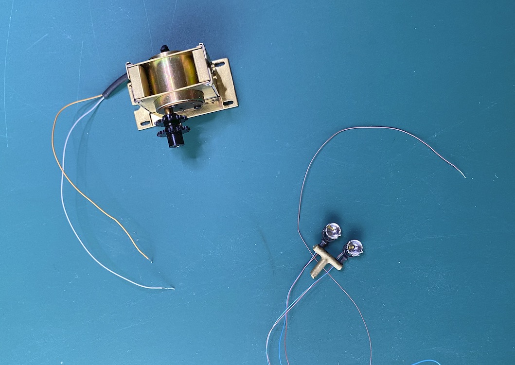 Montage du moteur et des phares. J'ai utilisé les LED de la boutique du Cercle.