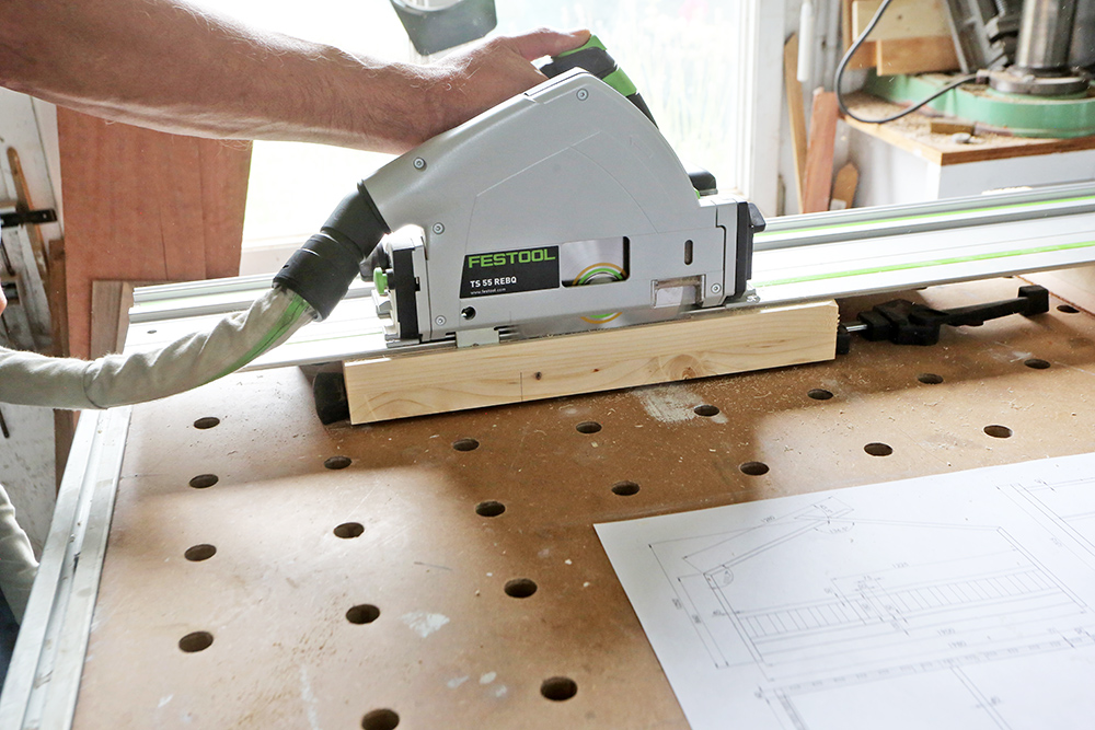 En électroportatif, j'utilise une scie plongeante sur rail, plus précisément une Festool TS 55 REBQ. Sans aller sur des modèles de cette gamme, il en existe de nombreuses variantes, qui, si elles n'offrent pas les mêmes niveaux de performances, n'en restent pas moins largement suffisantes pour fabriquer des modules !