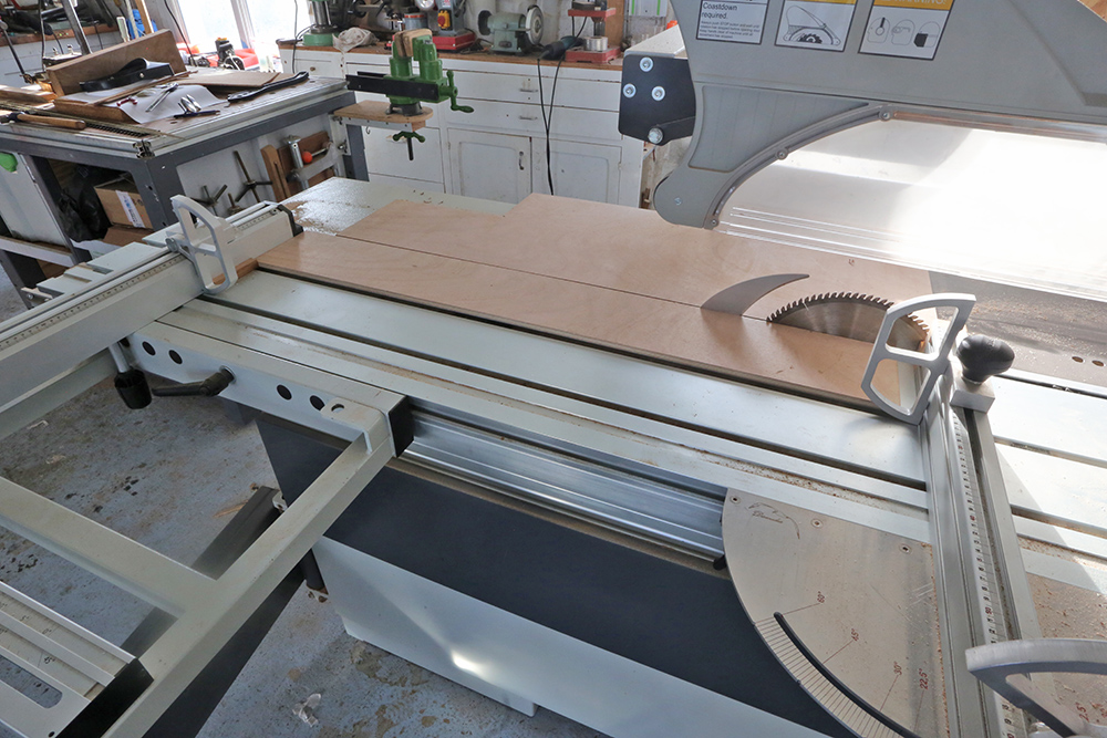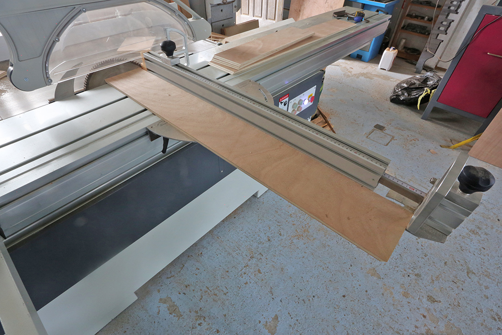 Le débit du bois (contreplaqué ou autre) est fait à la scie à format.