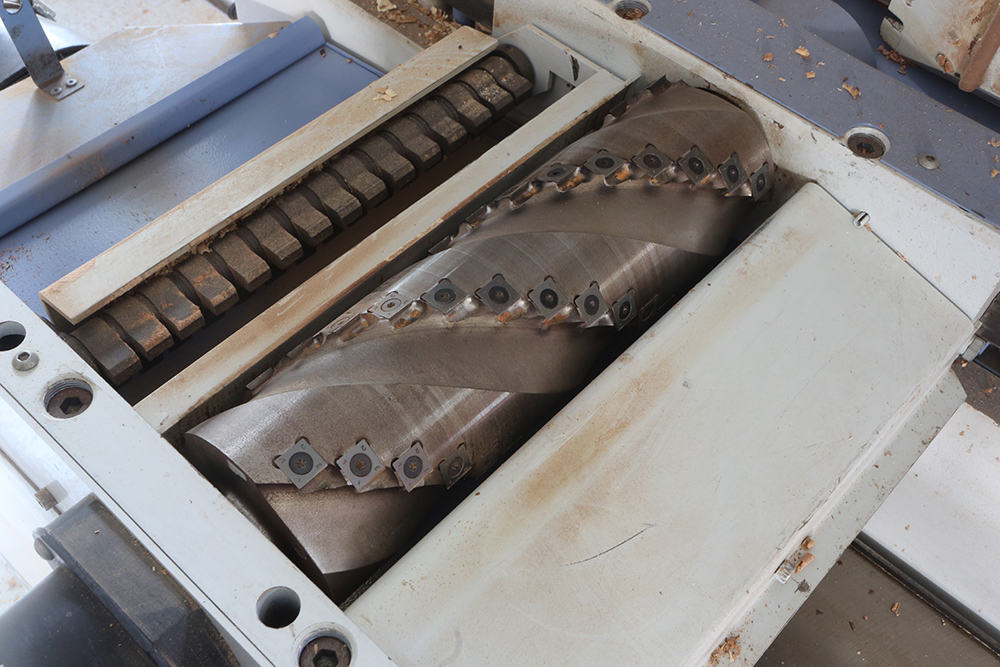 Si je le fais sans crainte, c'est parce que ma machine est équipée d'un arbre garnis de plaquettes en carbure de tungsten qui se rient des corps étrangers ! Terminé les fers en acier ébréchée par une pointe oubliée ou désaffutés au premier passage de bois siliceux !