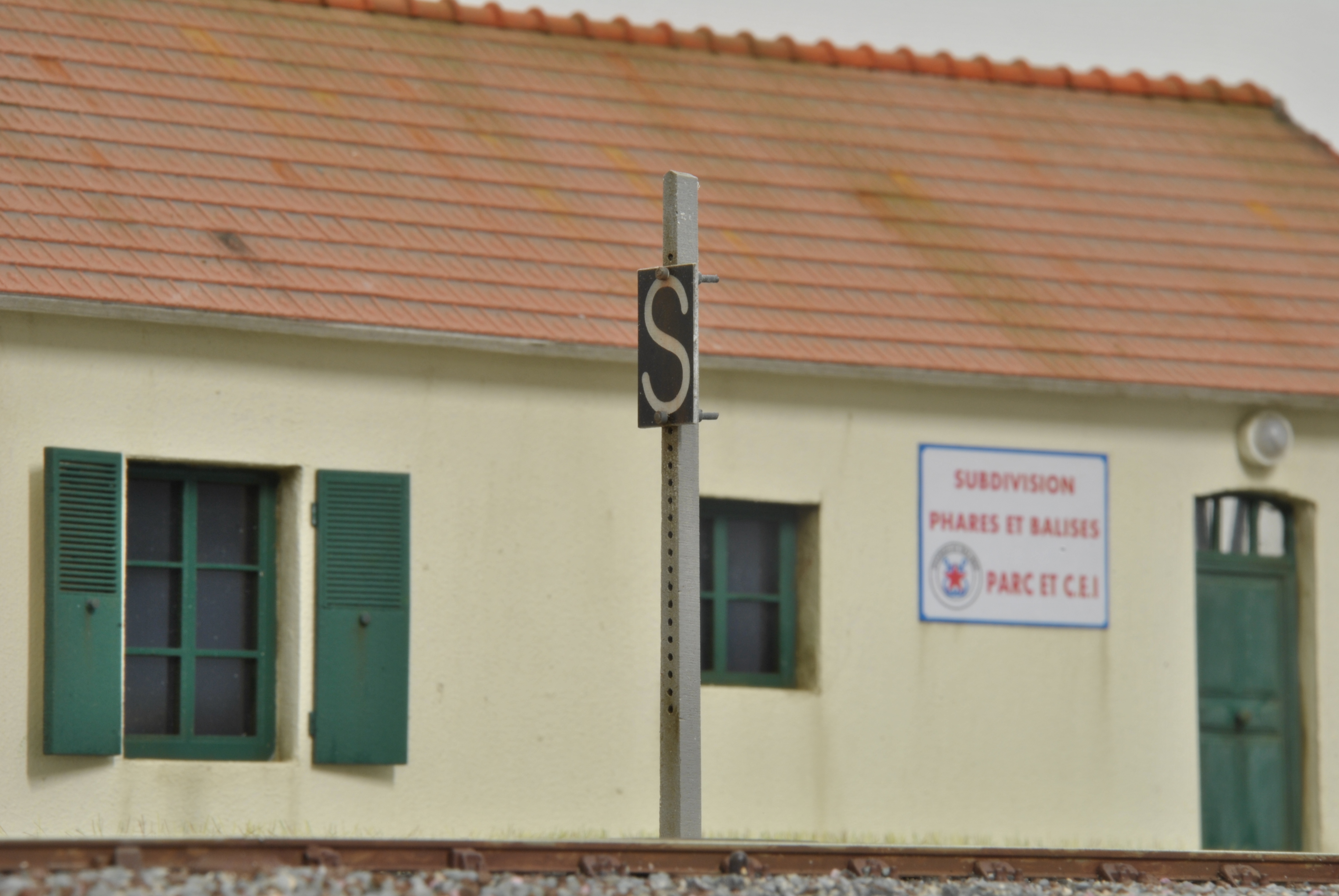 La signalisation fixe apporte un petit plus au décor ferroviaire. En réalité, il n'y en aurait certainement pas ! Ici on siffle avant d'arriver sur les quais portuaires. J'ai ajouté les boulons et patiné l'ensemble.