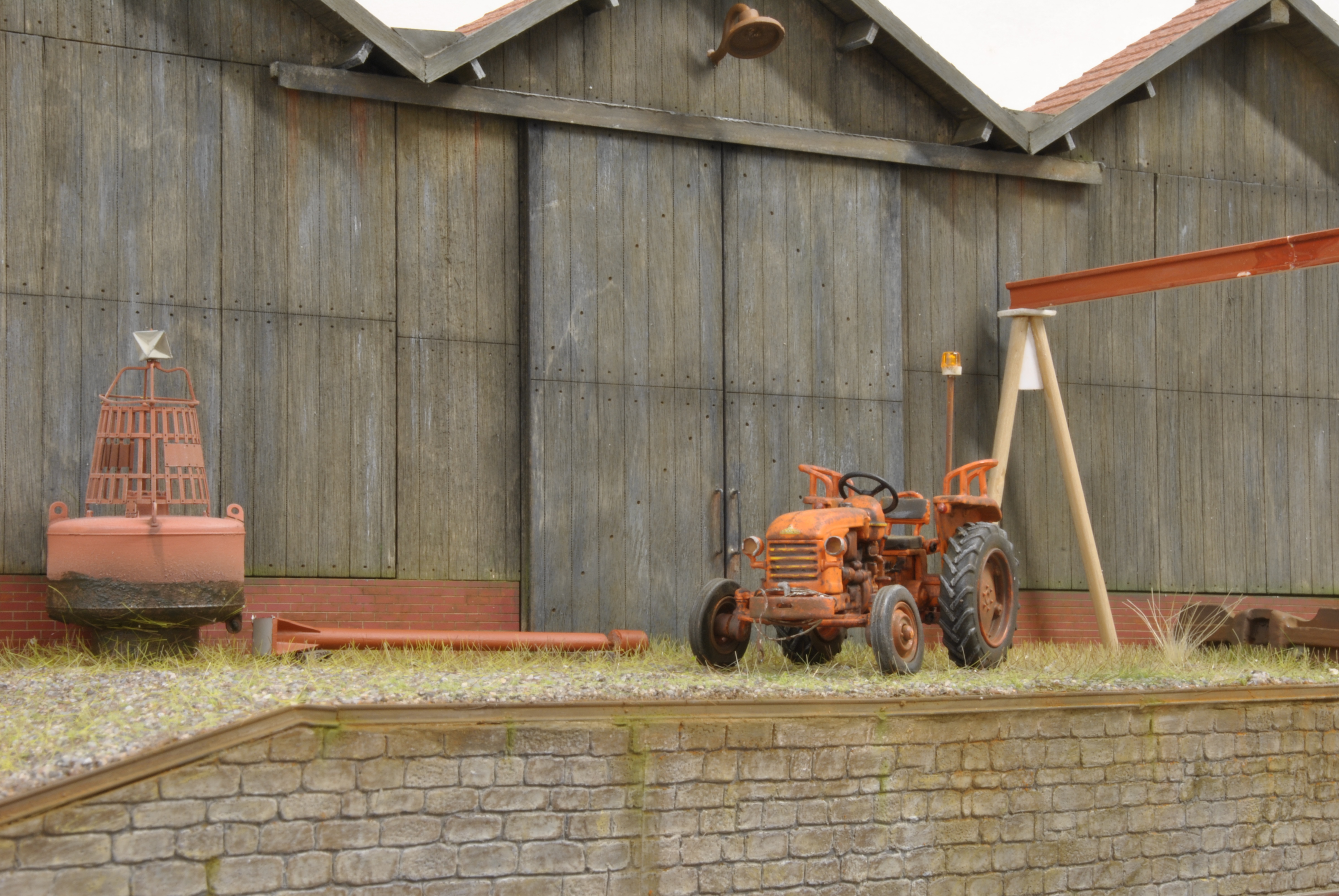 Le quai est aussi traité de la même méthode que le muret. J'ai commencé à poser quelques accessoires, une ancienne ancre, une bouée, etc.