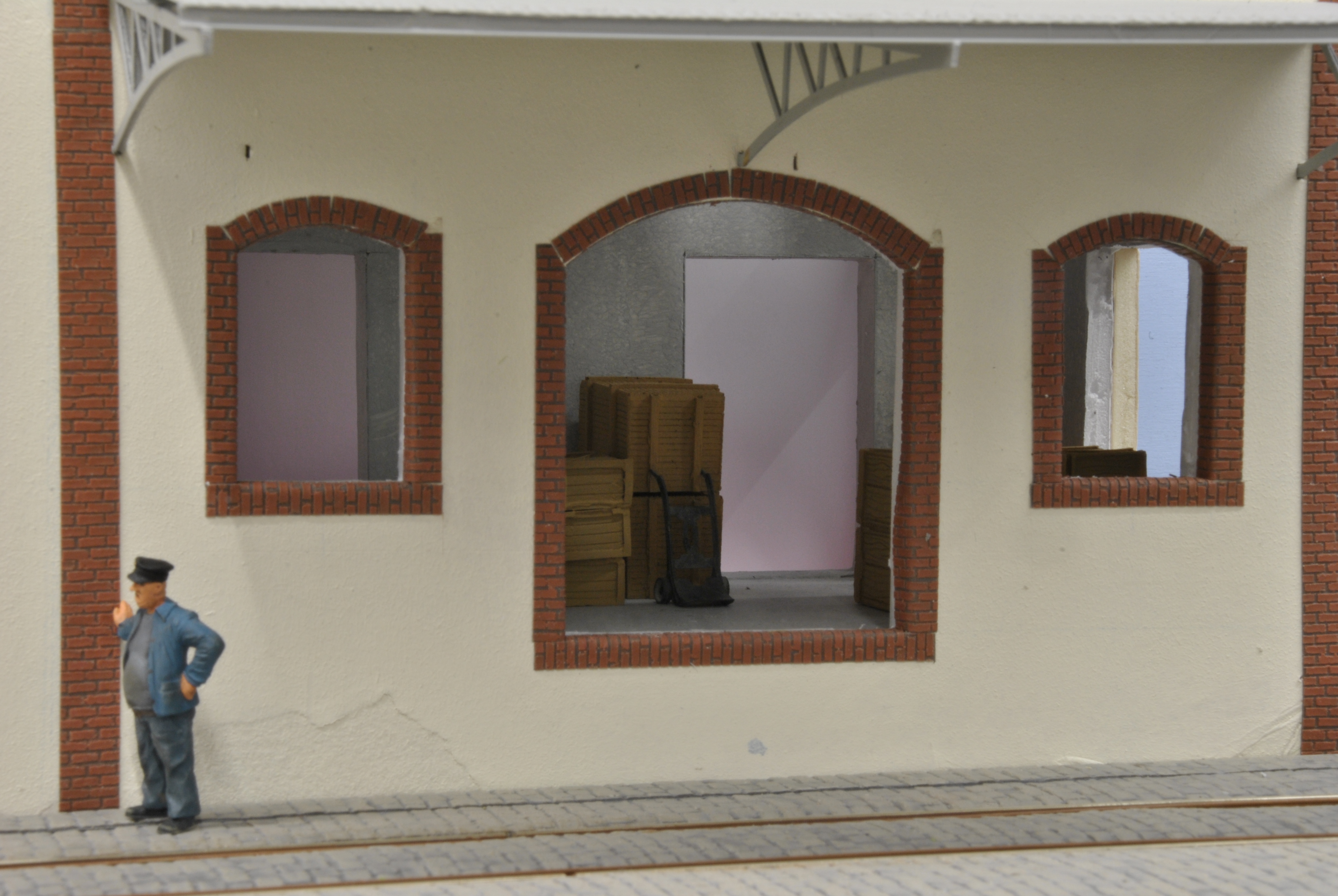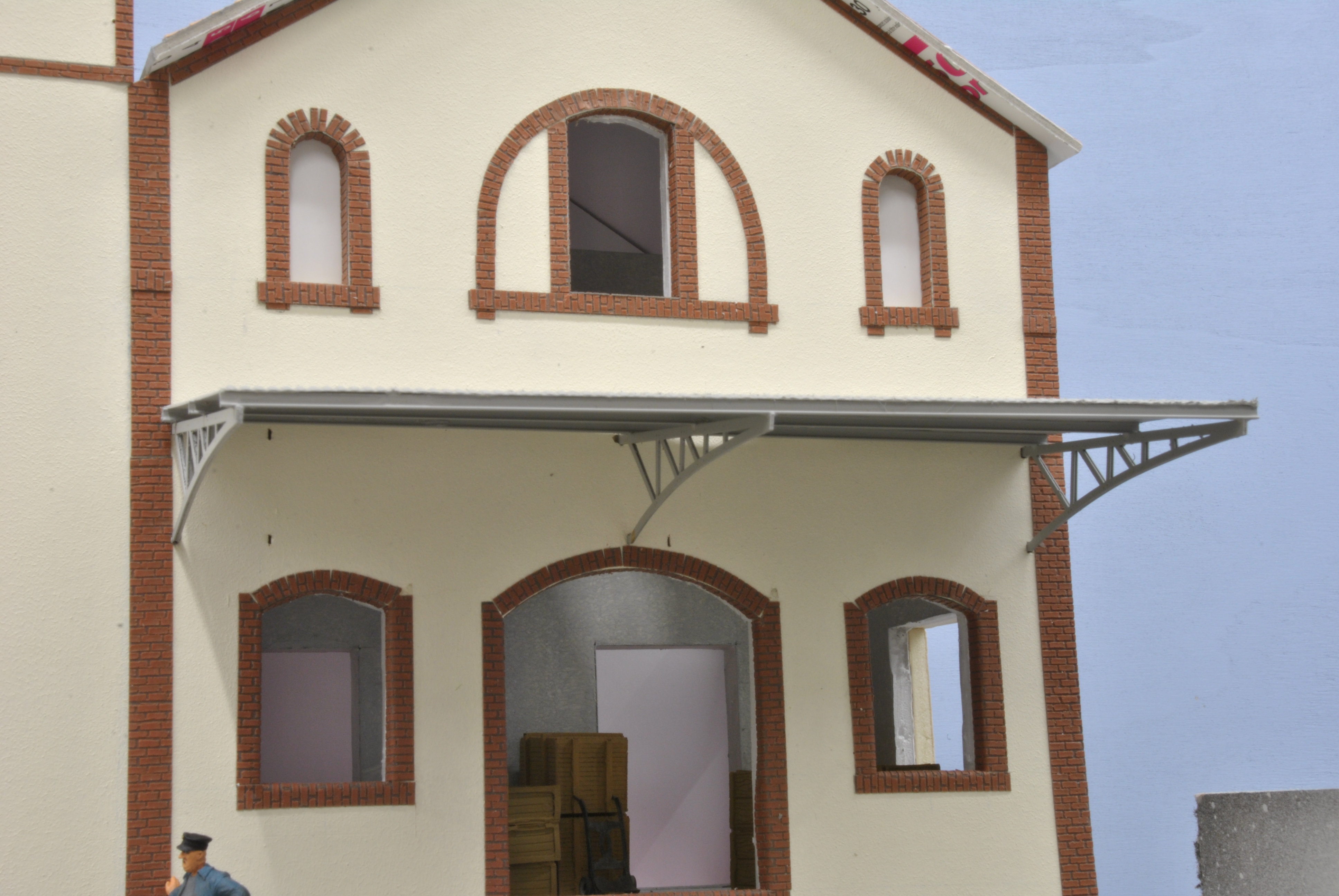 C'est loin d'être fini, le bâtiment est en deux morceaux pour le moment. J'ai assemblé un pignon et une façade. L'intérieur est amovible, les toitures également.