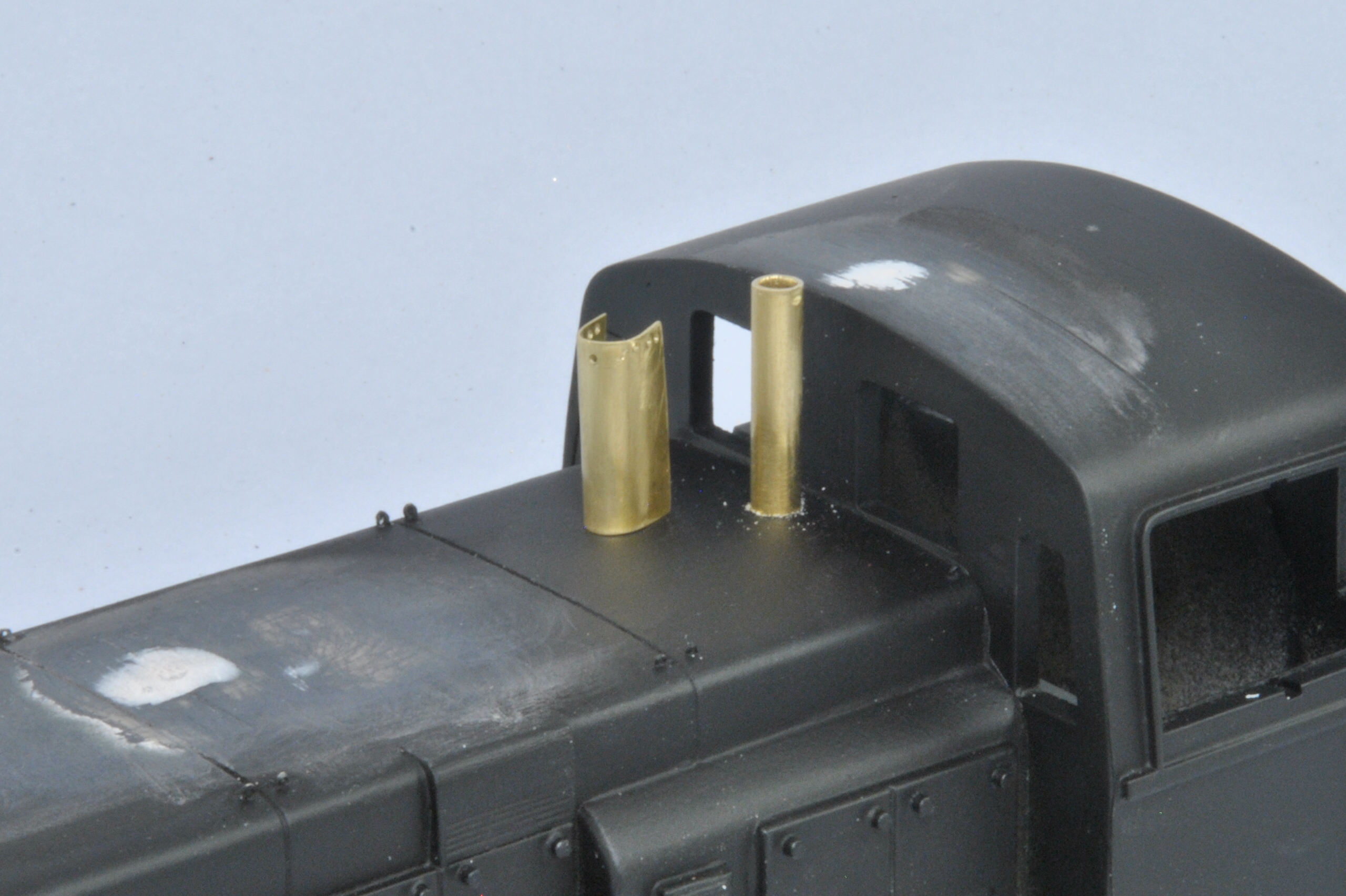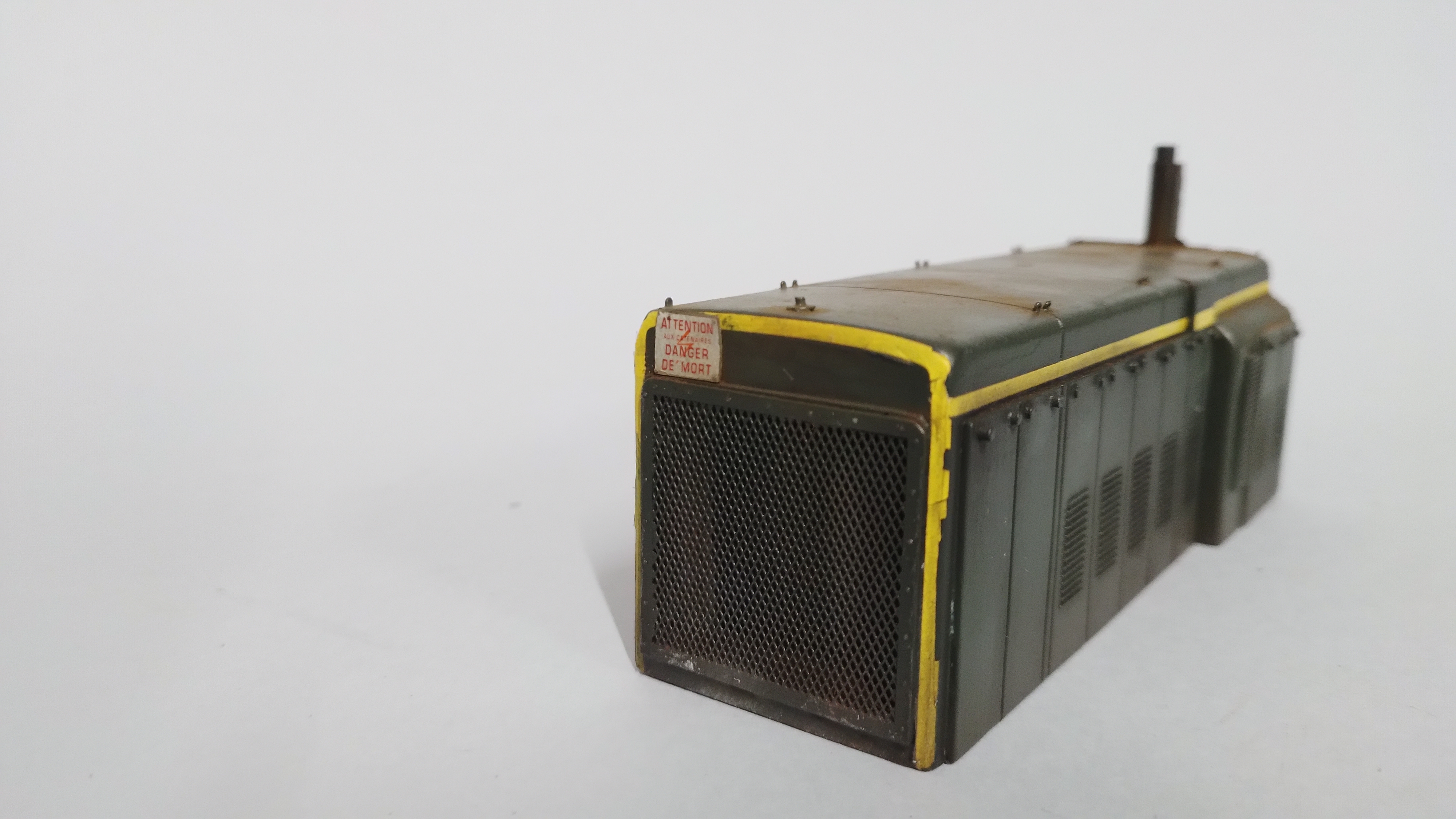 Olivier : C'est bien un DJH modifié. J'ai mis un ESU loksound V5 avec le son Esu de BB63500 (V12), le haut parleur est remplacé par un ESU rond diamètre 28, mis derrière la calandre. J'ai supprimé la résine pour mettre une vrai calandre en grille fine. Devant le hp, il y a aussi une grille qui simule le radiateur. Et ça fonctionne très bien !