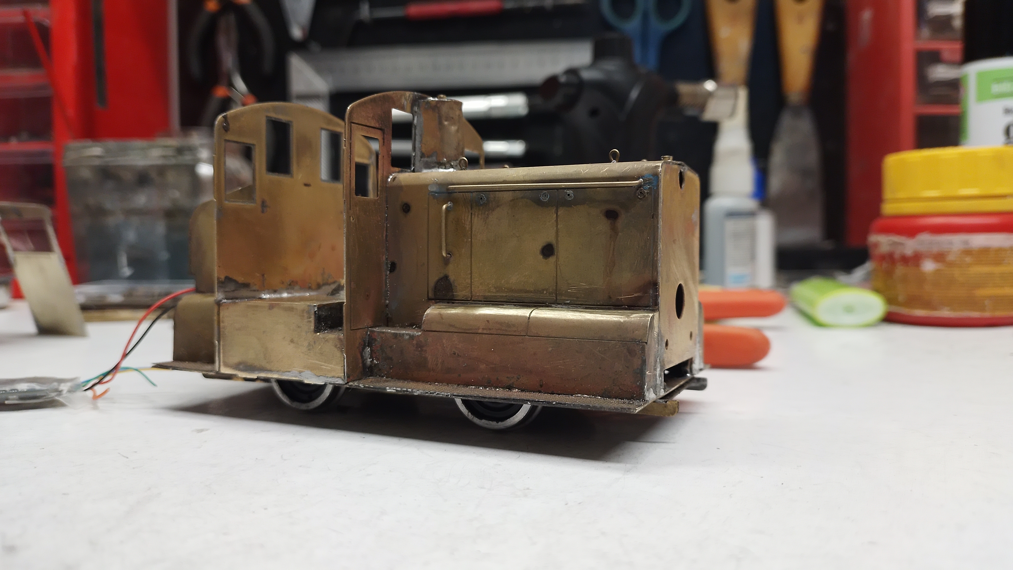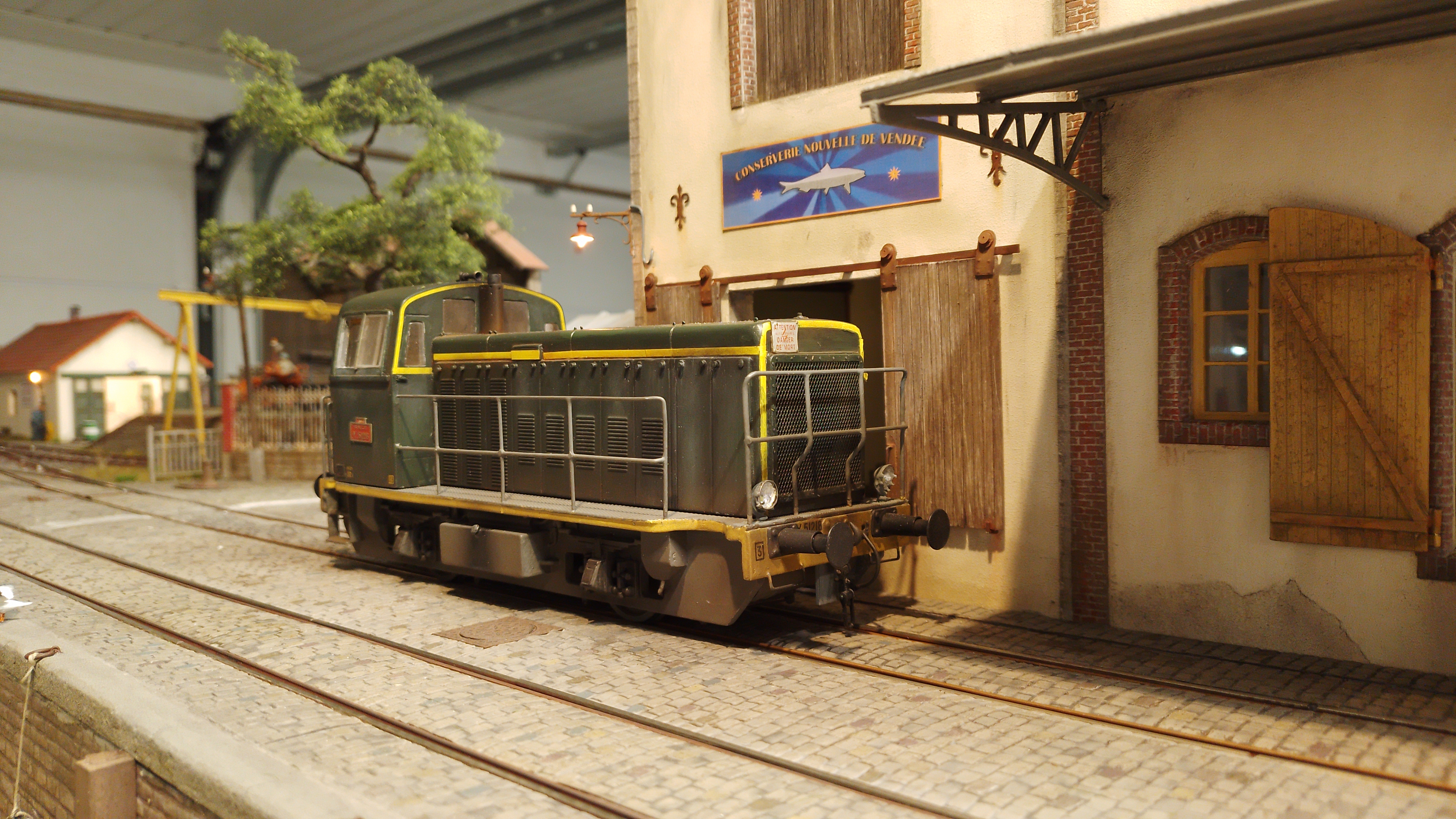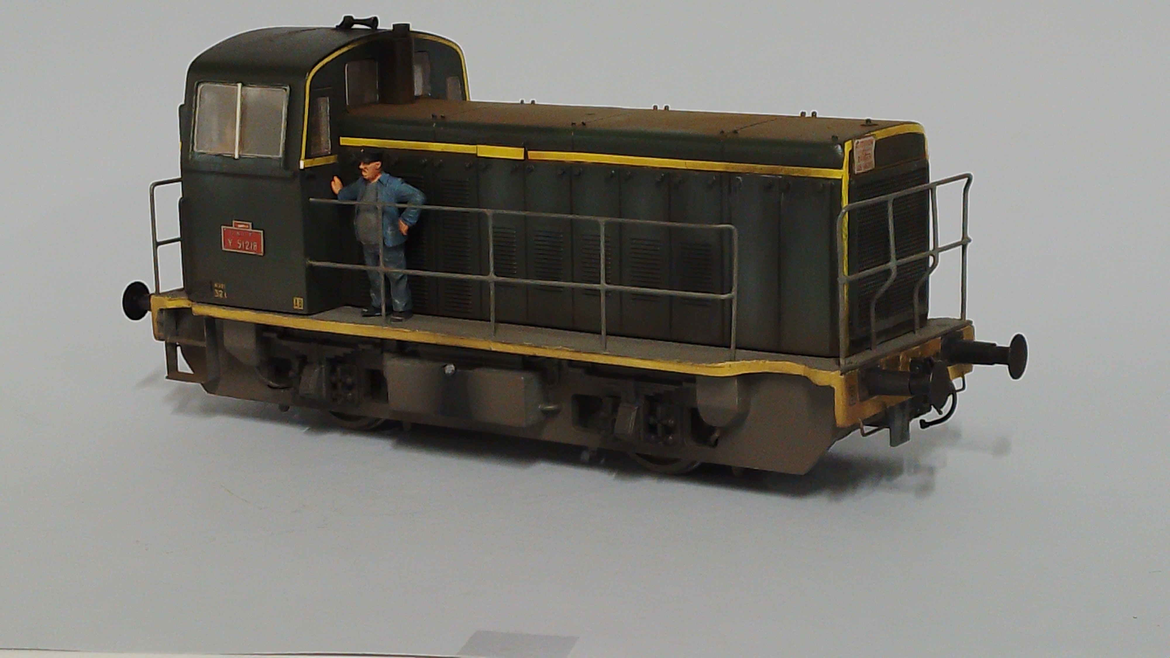 L'Y51218 avec ses feux (fonctionnels), patiné. En expo, j'ajoute un personnage MK35 sur le tablier.