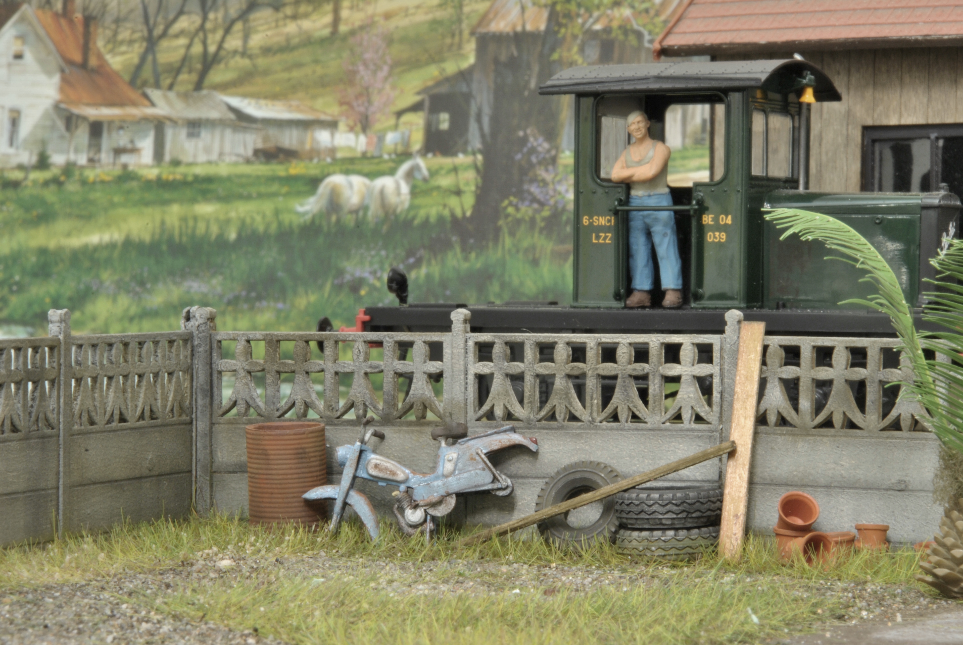 Quelques bricoles posées ce soir contre la clôture, avant de m'occuper des arbustes du jardinet. L'état de la vieille "Tobec" permettra de dater un peu plus la scène.
