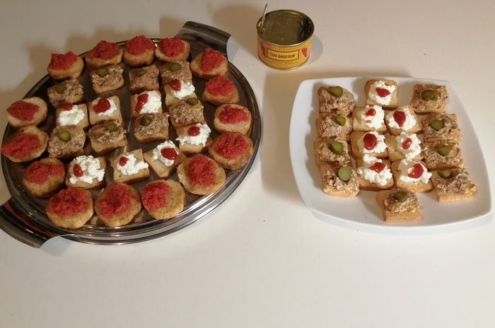 Comme il y a beaucoup de Capricornes dans la famille (Pierre ... ) nous avions une petite réunion à la maison, et pour l'apéro, j'ai ouvert cette boite pour faire les petits toasts ...