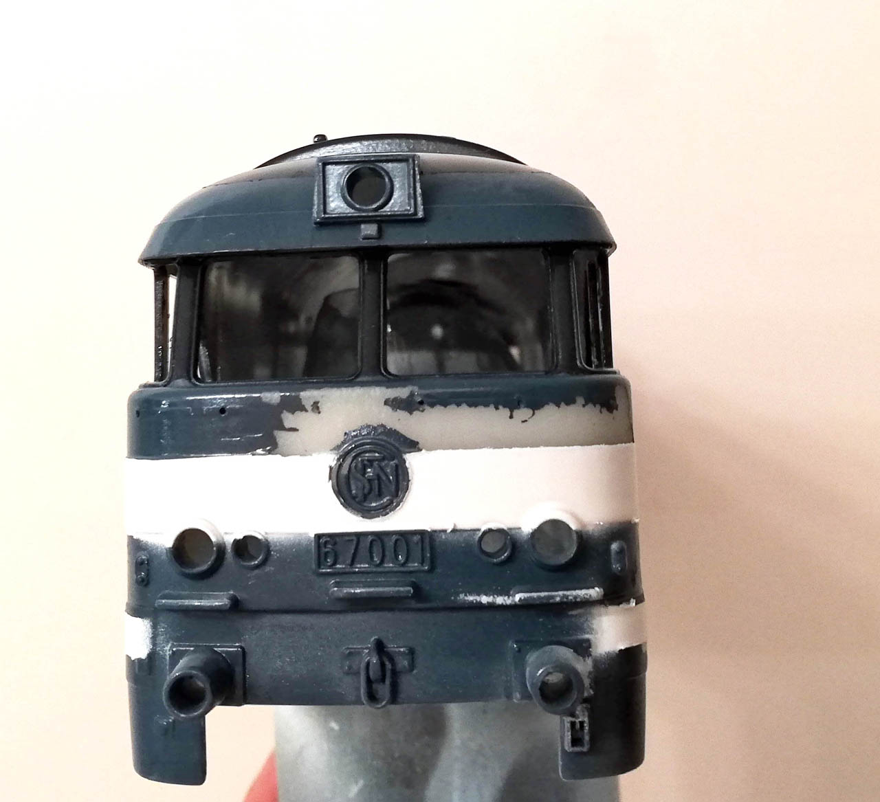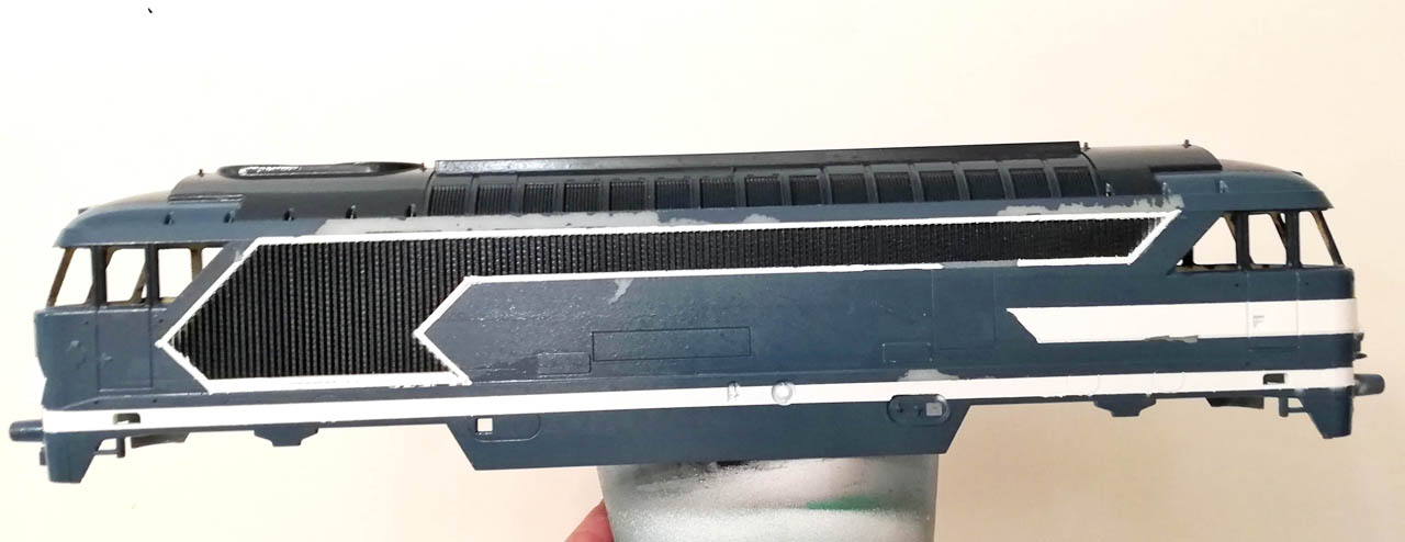 Finalement, il est indispensable de passer une couche d'accroche sur les locomotive Lima, pour ce type de peinture.