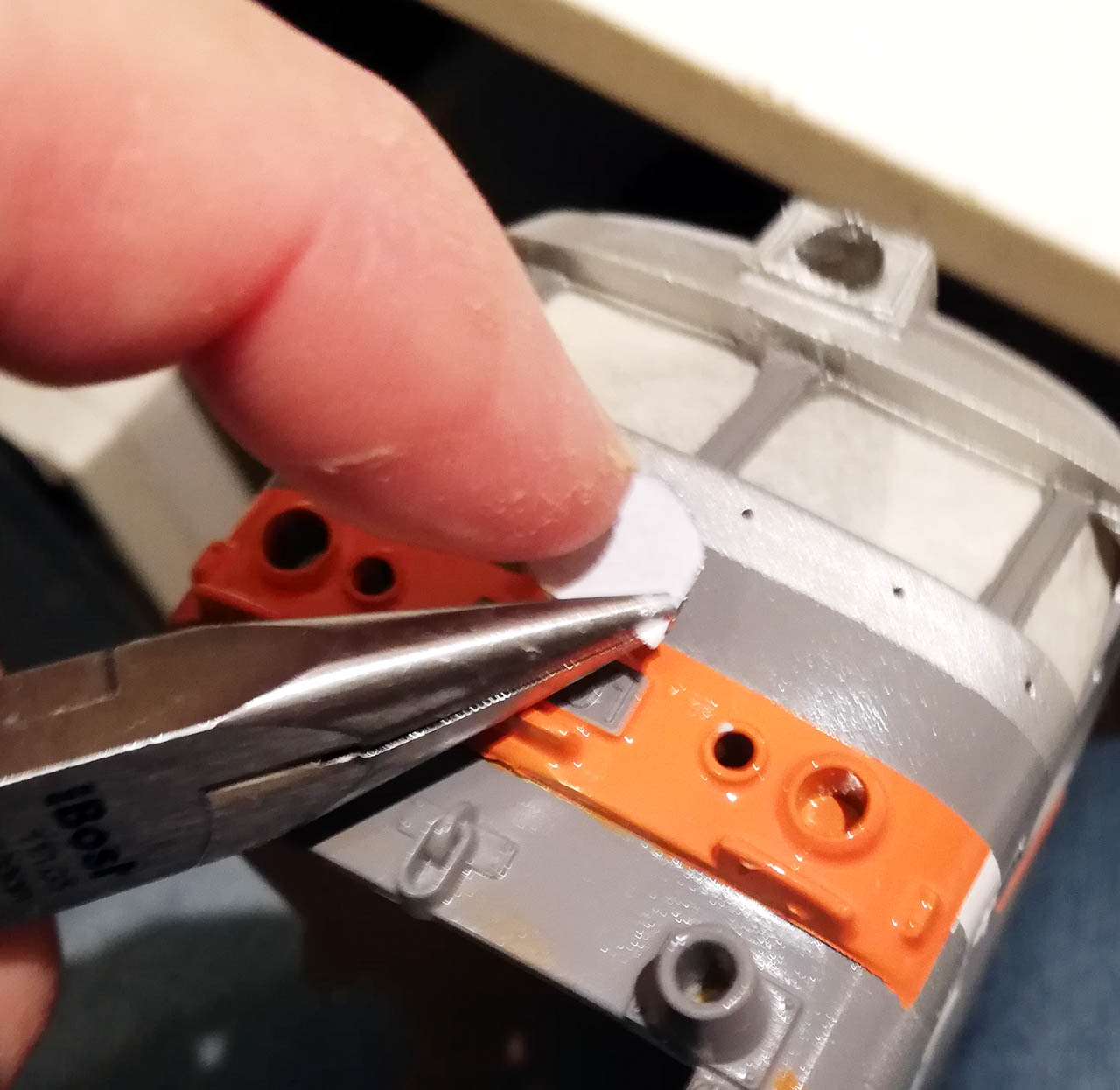 C'est vraiment la peinture qui ne tient pas sans apprêt, car même avec du masquage Tamiya, la peinture s'en va, même celle à coté du masquage!
