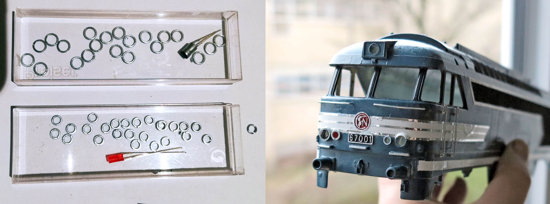 Comme cette locomotive sera souvent manipulée, j'ai découpé un petit tube transparent d'aérosol, en rondelles d'un mm.