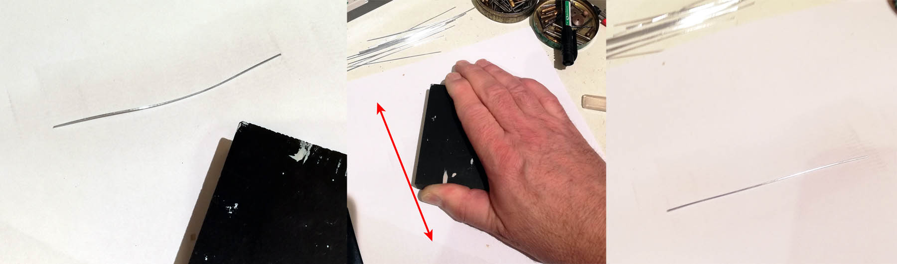 Je coupe des morceaux de 10 cm. En les faisant rouler sous une cale, ils deviennent rectilignes. .