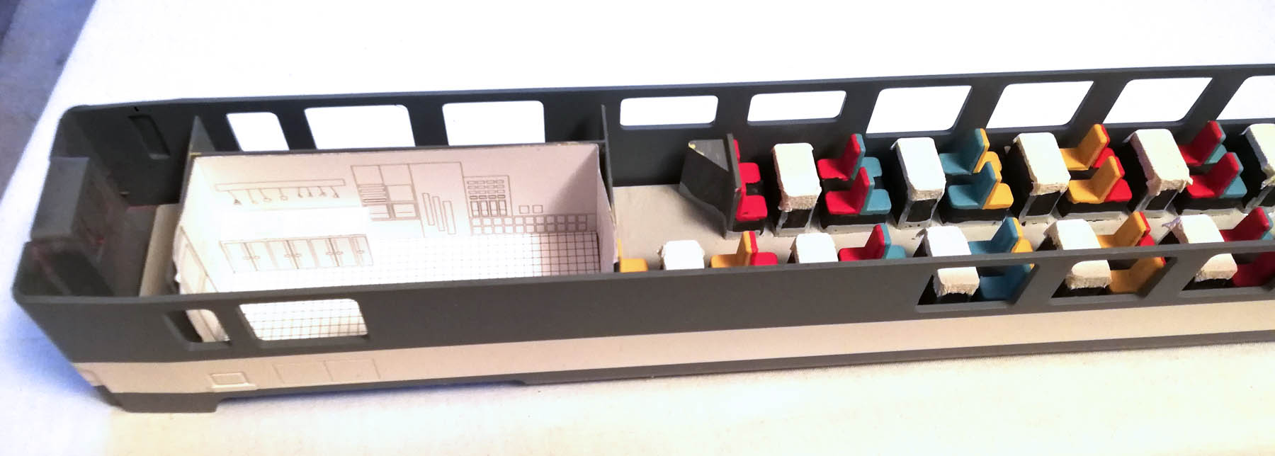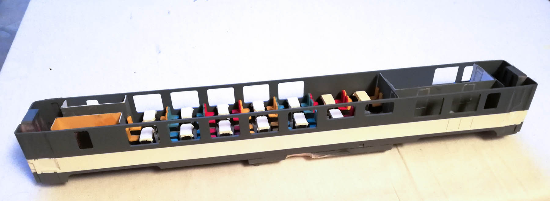 J'ai peins mes portes des voitures Corail à l'aérosol après un masquage correct. Bon, c'est un massacre la peinture est encore passée partout. Après un nettoyage éprouvant à l'alcool 95°, il faudra que je reprenne la peinture blanche et grise de la caisse qui était pour ce coup ci, pas trop mal.