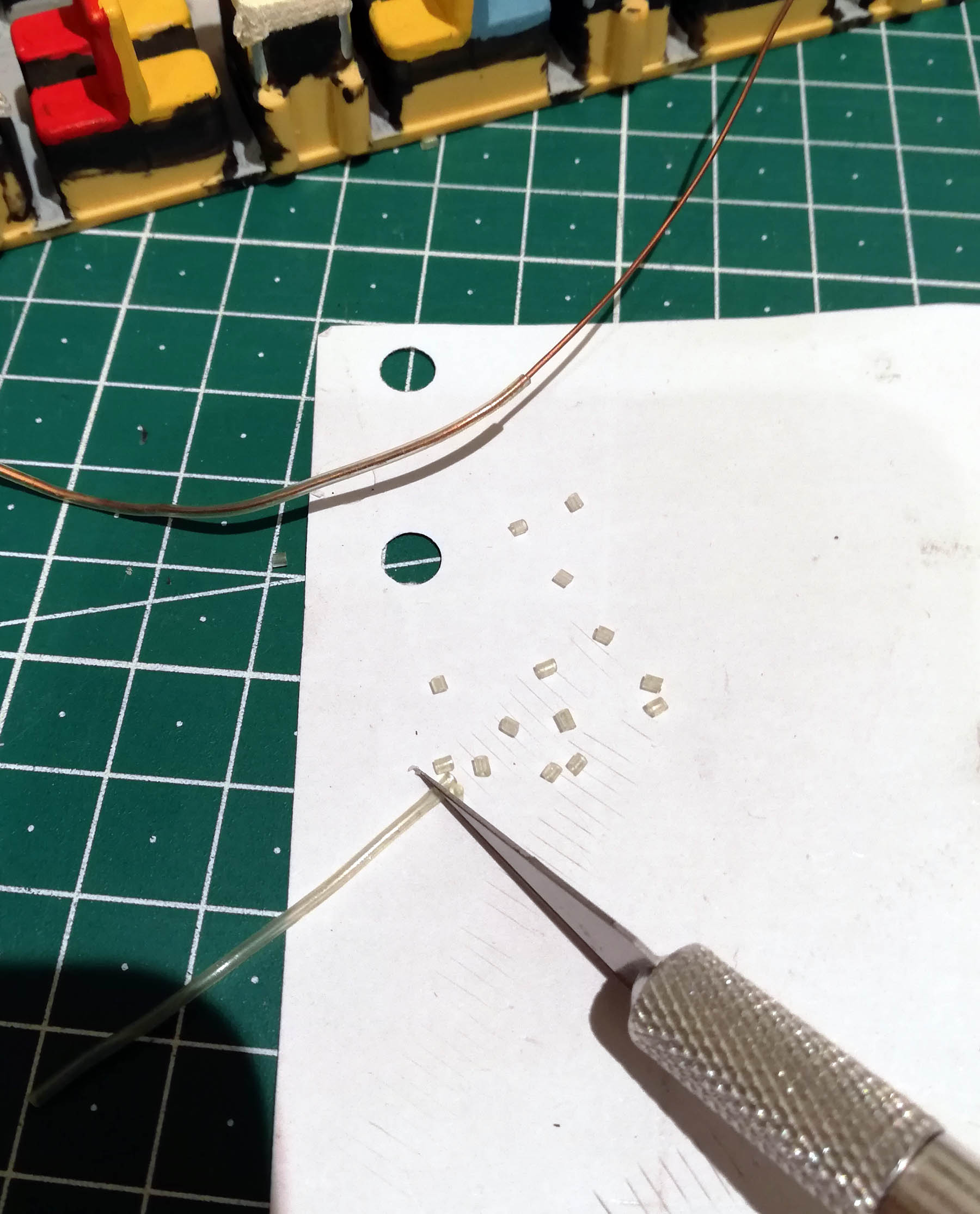 Je dépose en vrac, un verre sur chaque goutte de colle. .