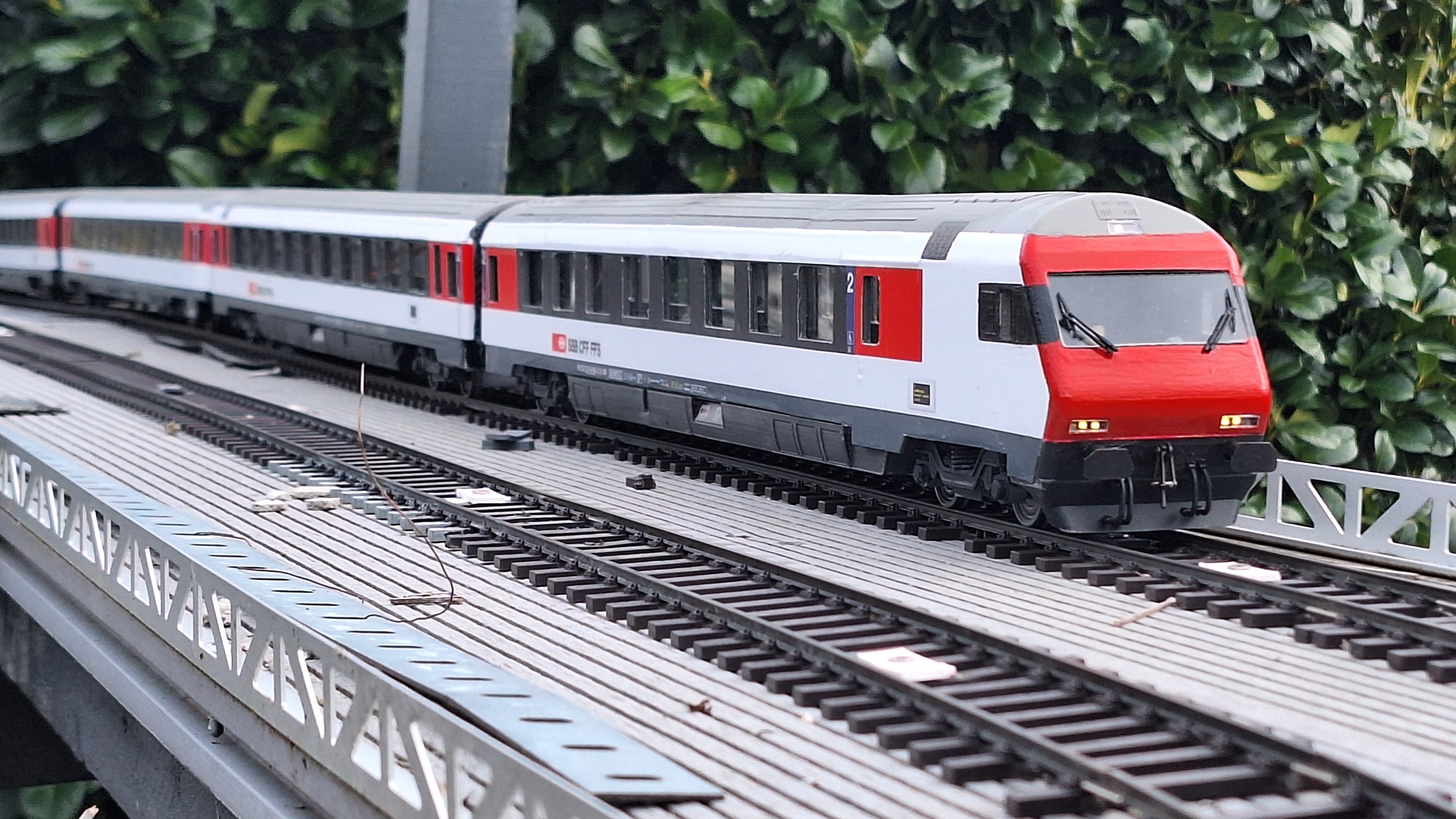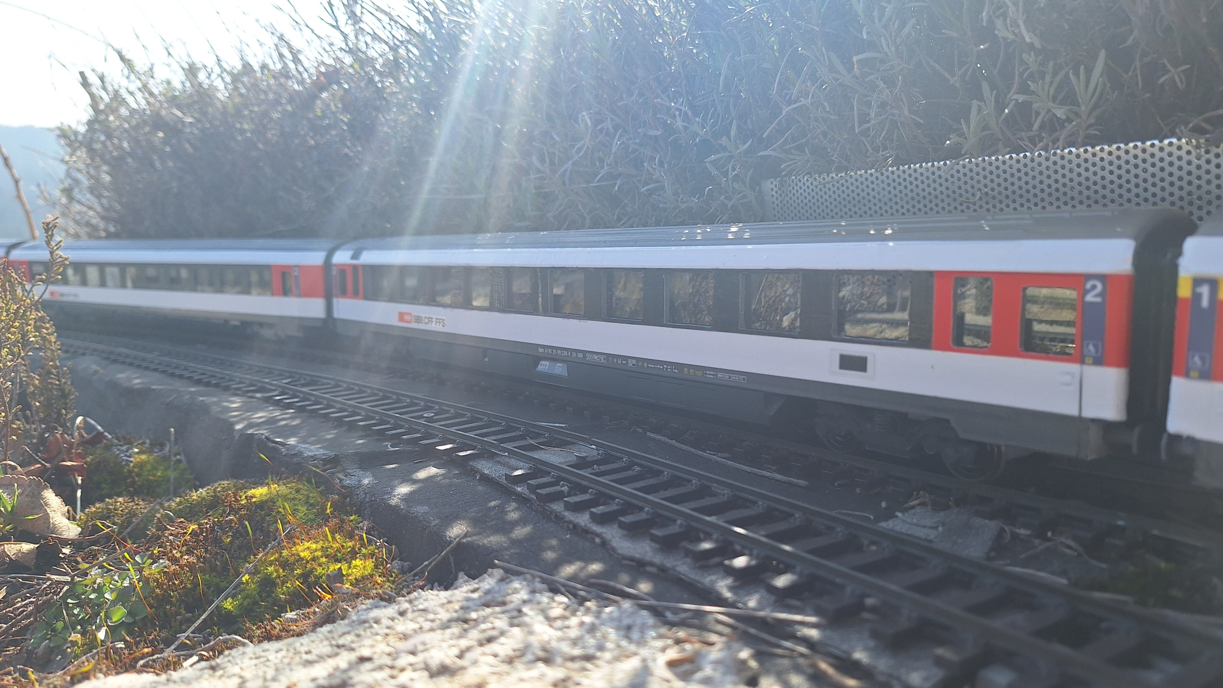 Premier roulement de la rame IC dans mon jardin.