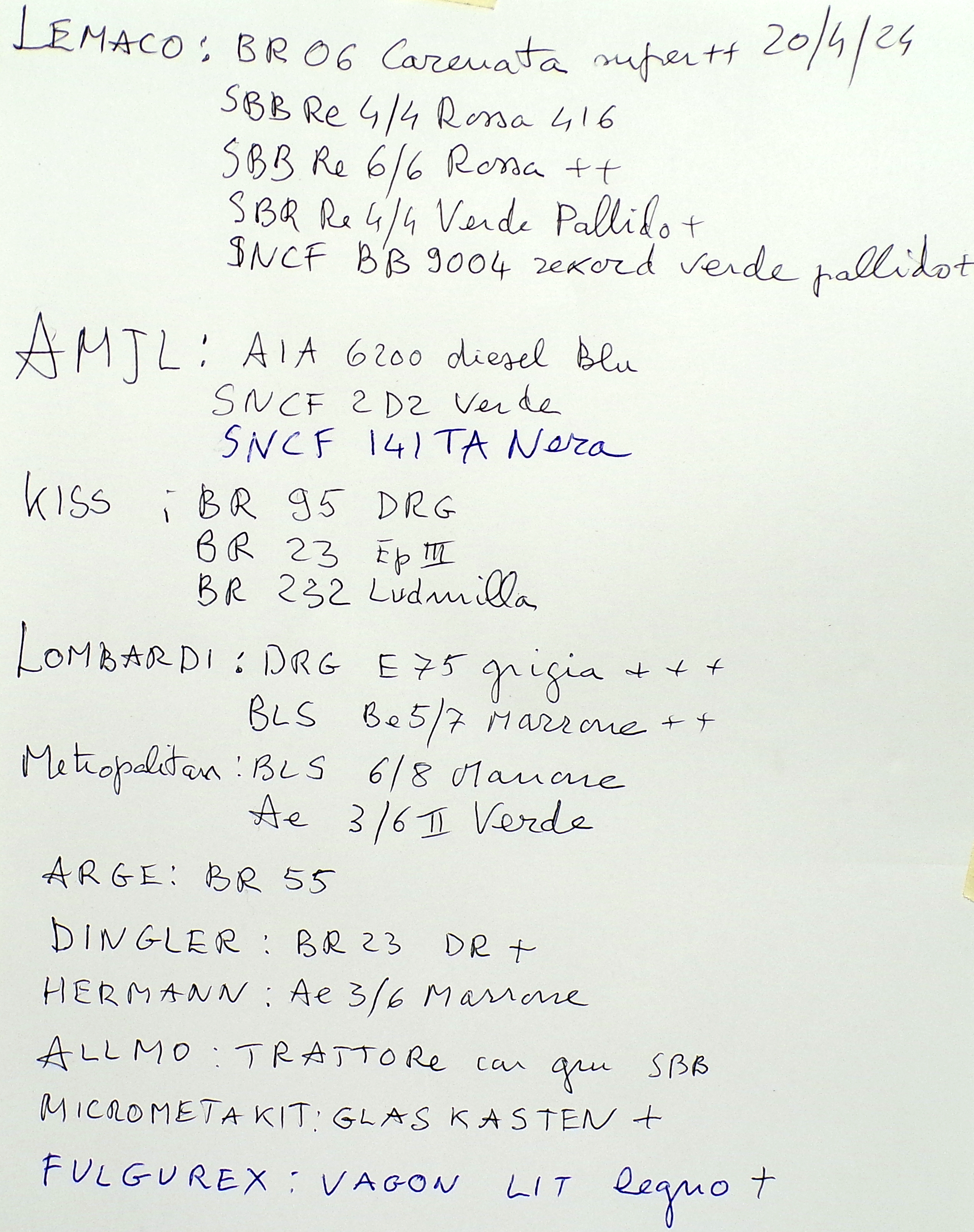 Les voitures lima n'atteignent plus 15CHF (j'en ai vu partir à 5CHF), pareil pour les Rivarossi que l'on peut trouver à 30-50CHF