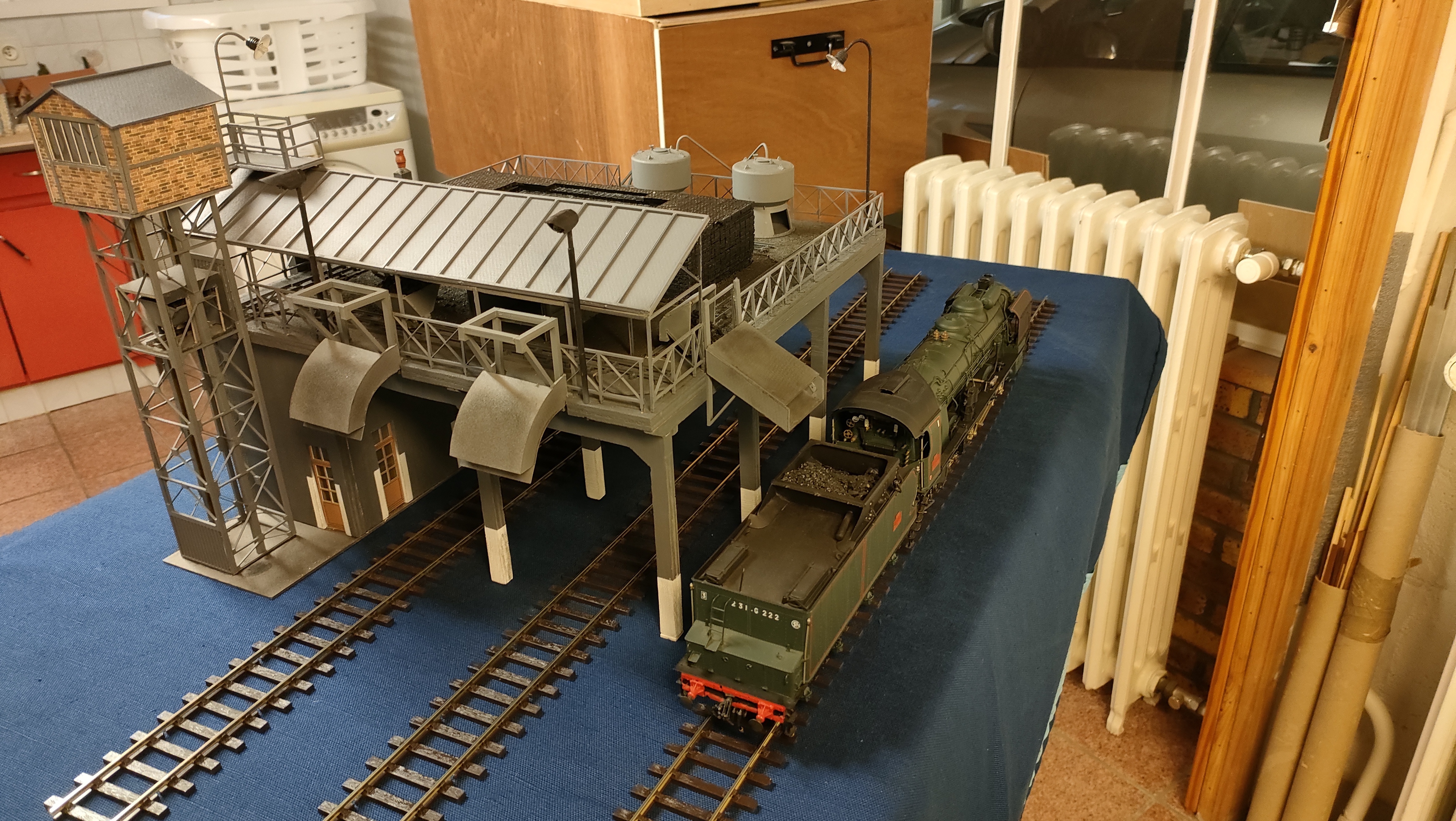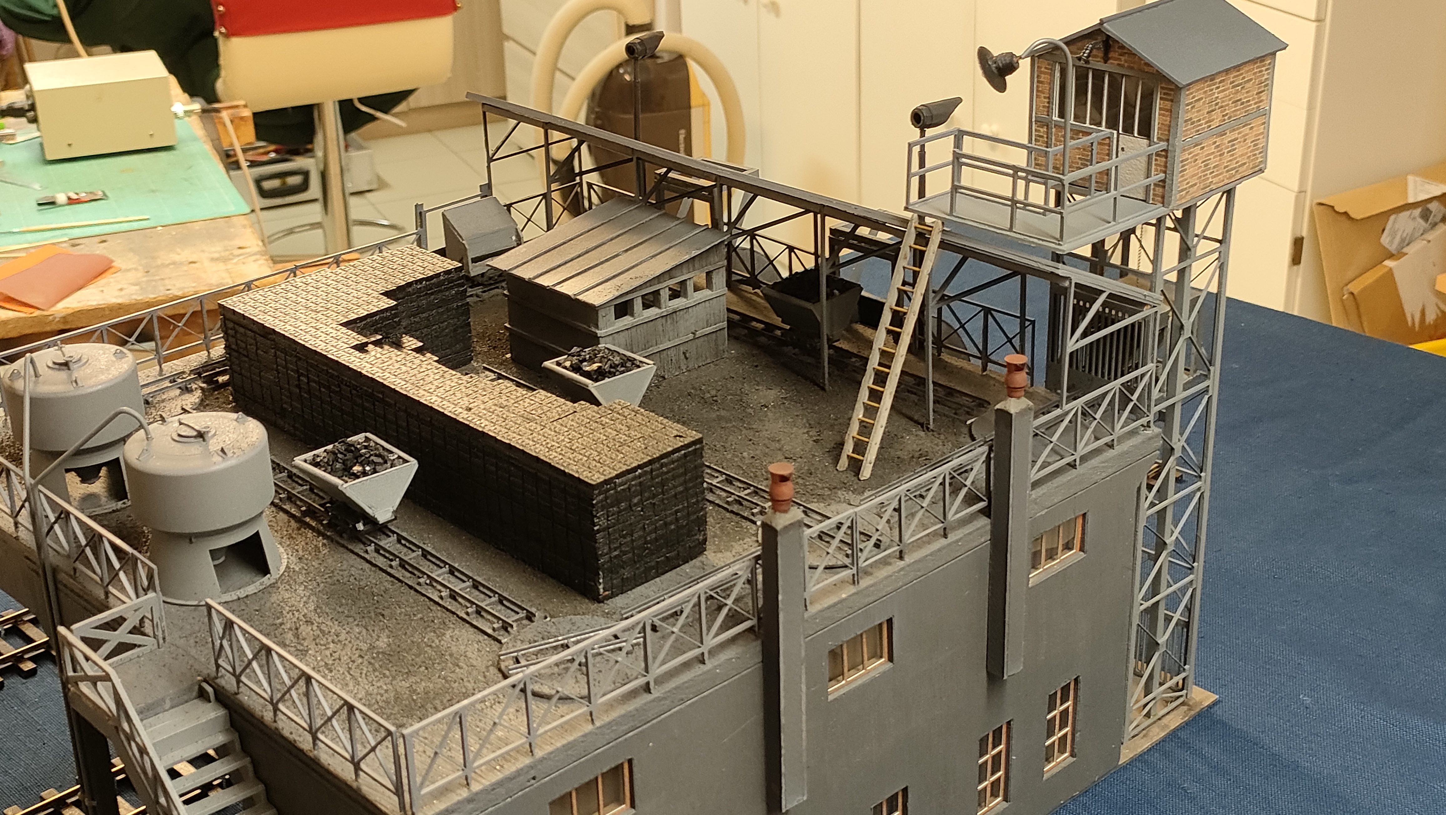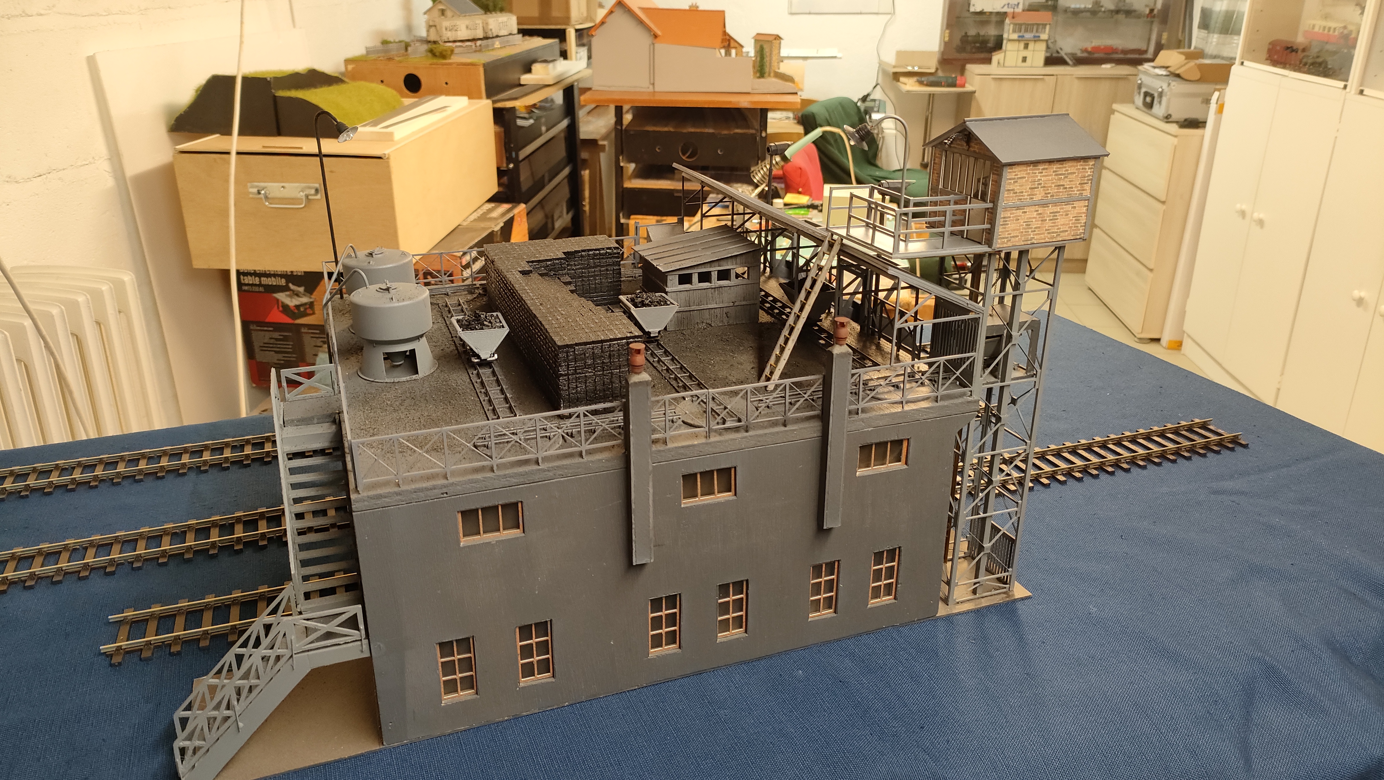 Le sol de la plate forme a reçu de la poussière de charbon pour faire plus vrai.