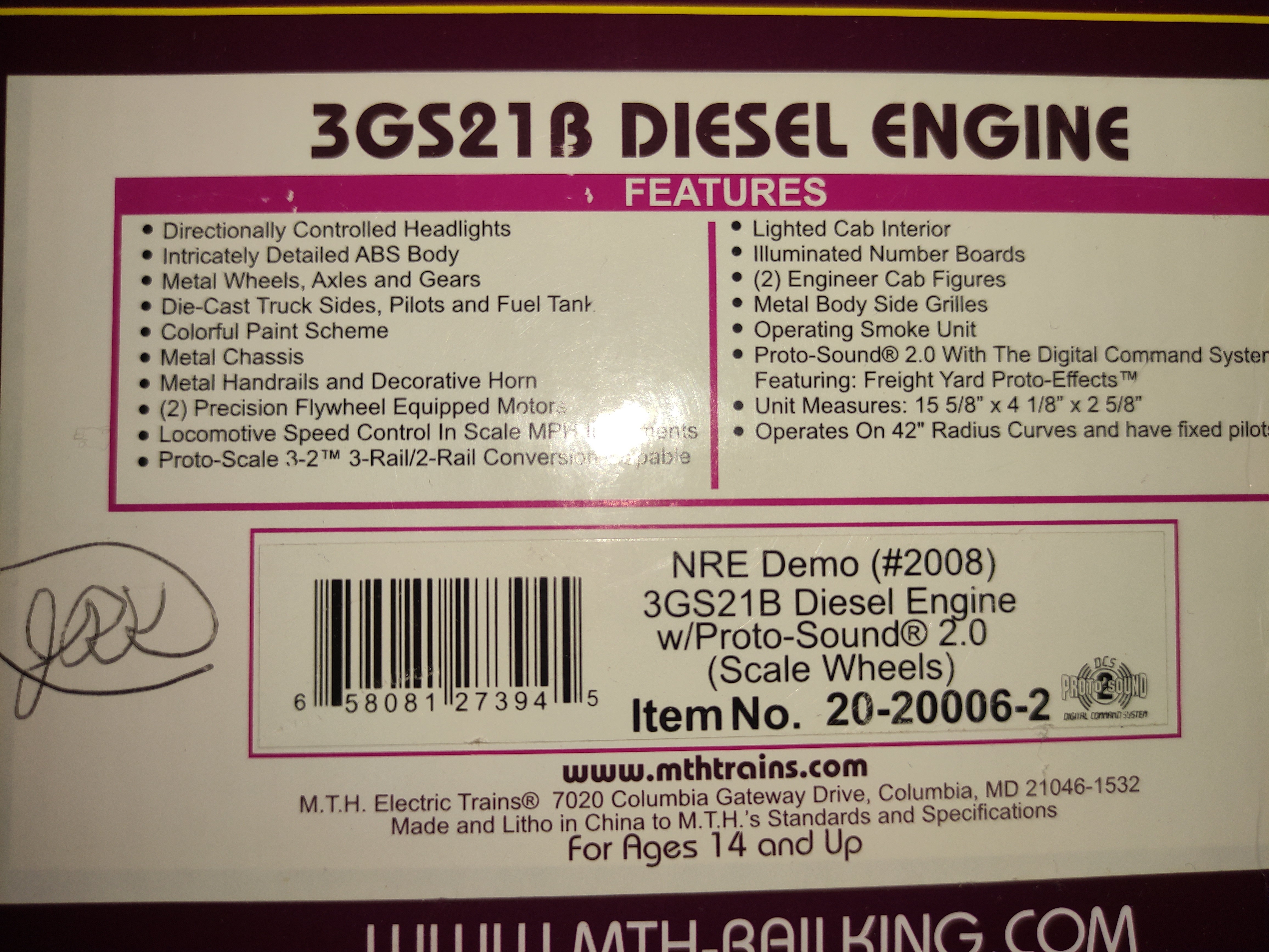 Equipé en Protosound 2=> Nécessite installation vrai décodeur DCC