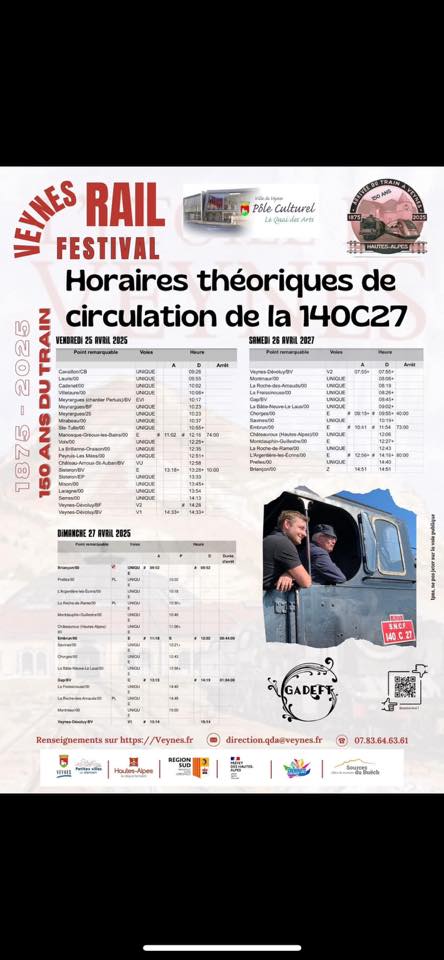 Re: voyage train à vapeur + expo 150 ans de la ligne des Alpes à VEYNES (05) le 26 et 27 avril 2025