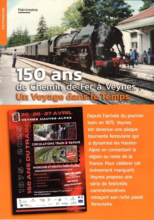 la ville de VEYNES organise des manifestations pour feter les 150ans de l'arrivée du train dans les Alpes