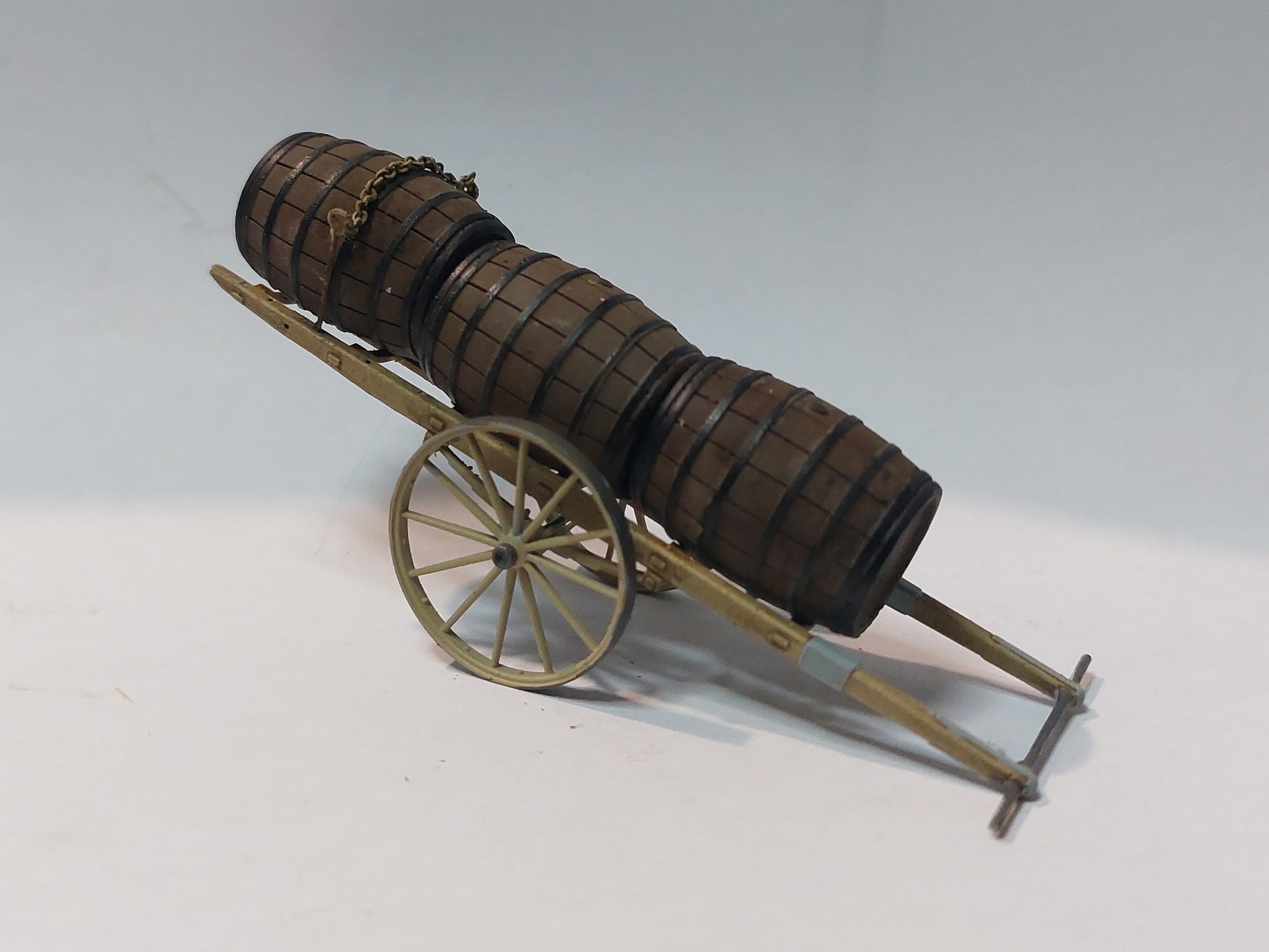 les quarts-de-muids peuvent aussi être transportés sur une charrette à bras, seuls, par deux ou par trois.
