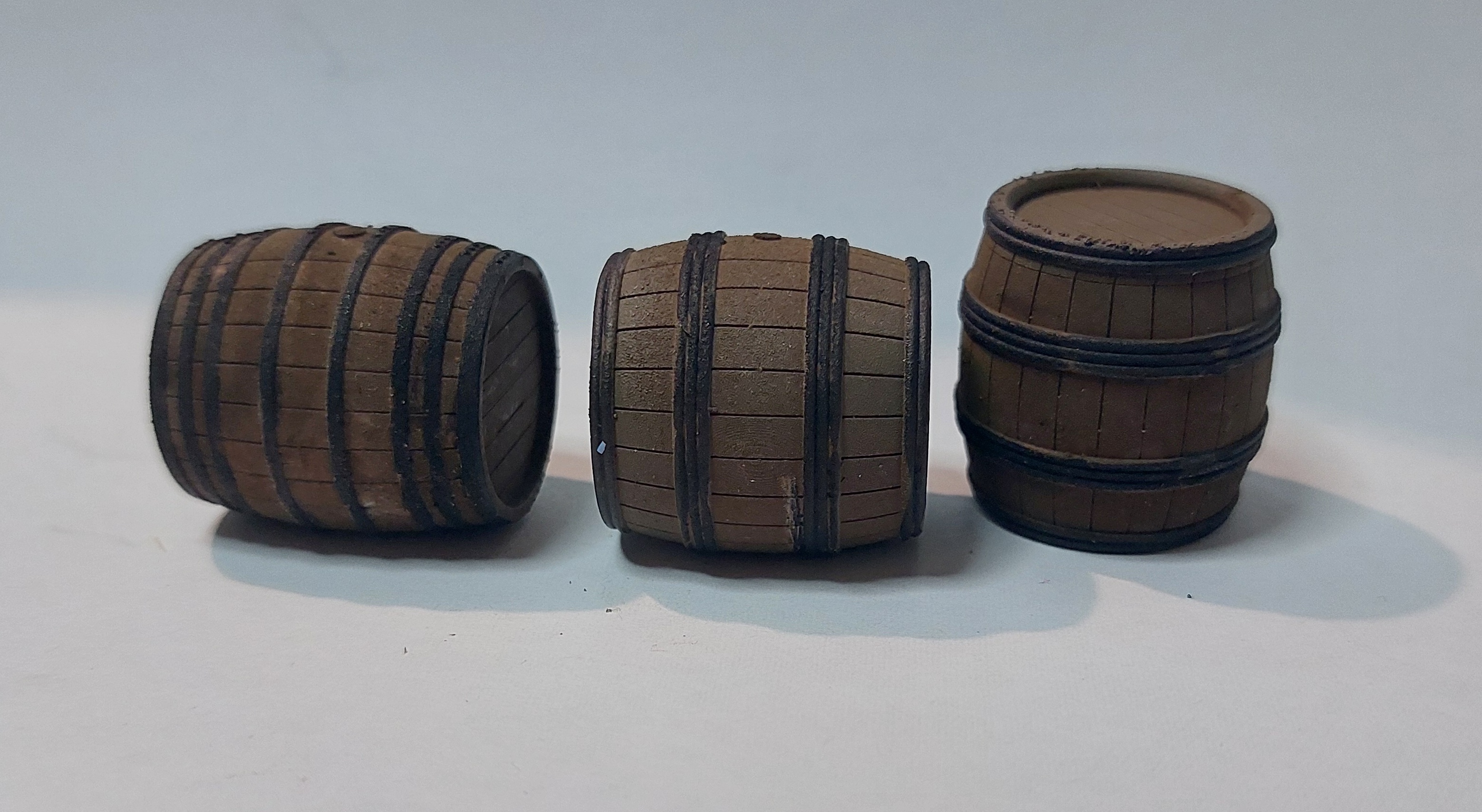 noter pour les demi-muids qu'il disposent de deux types de cerclages différents. il dispose d'une troisième référence se mariant bien avec les deux autres, mais que je n'ai pu acquérir à Nîmes, celle-ci n'étant plus disponible...