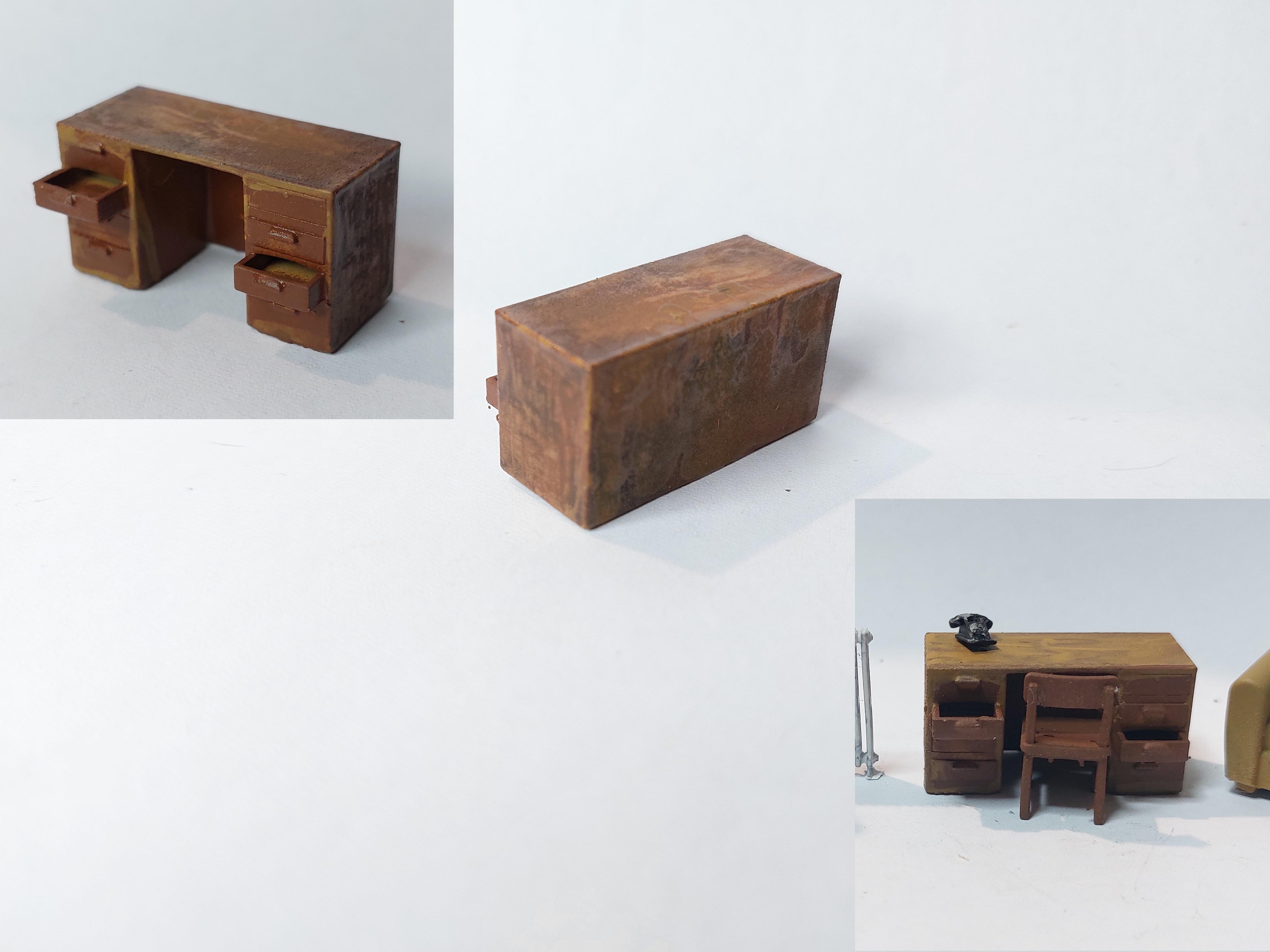 j'ai essayé de retravailler sur le bureau issu du coffret de chez Model Kit Shop...