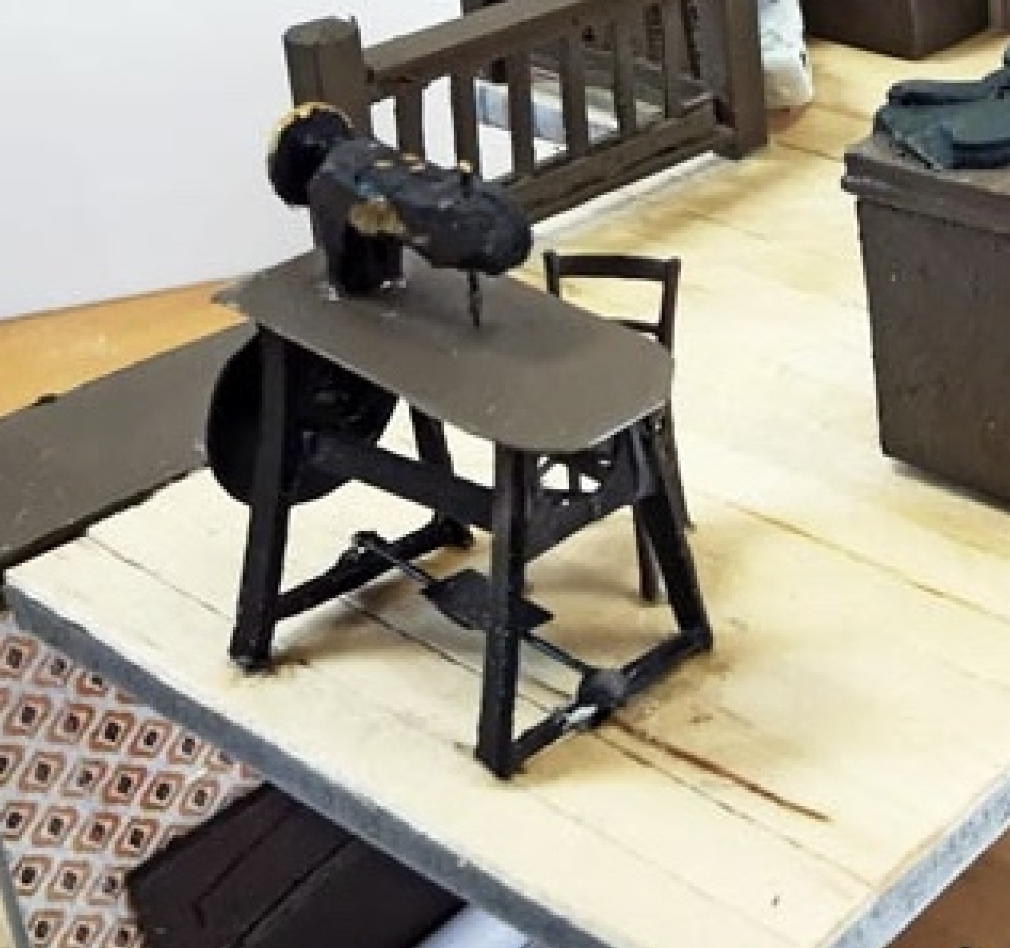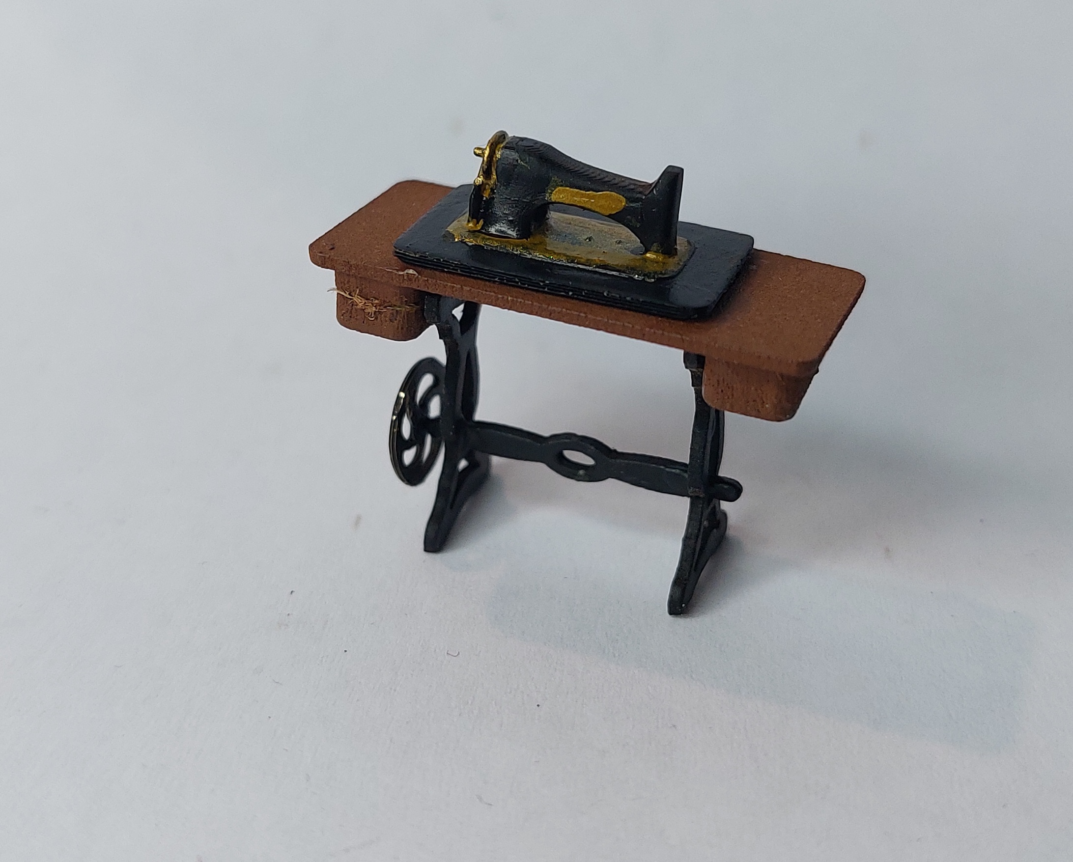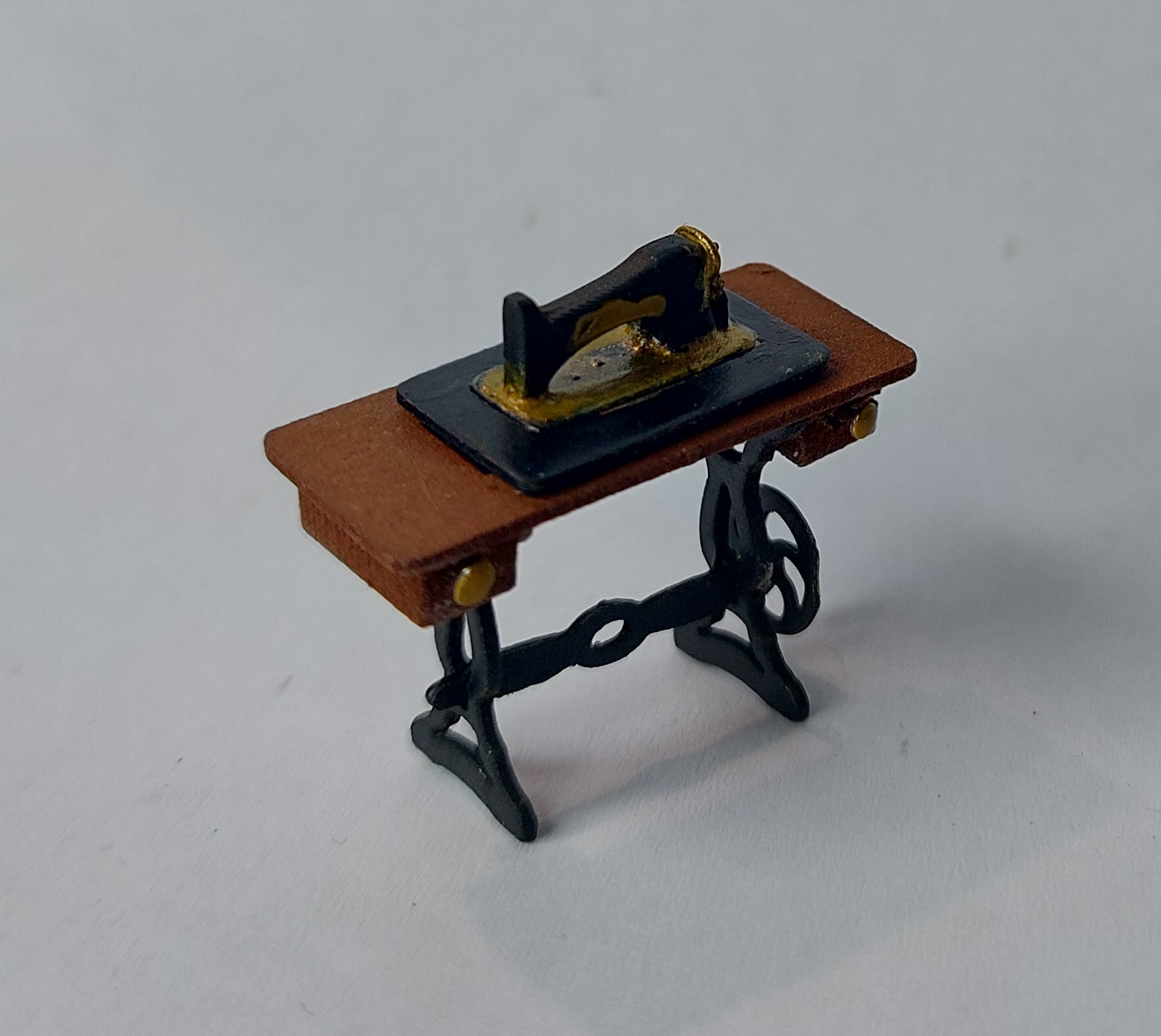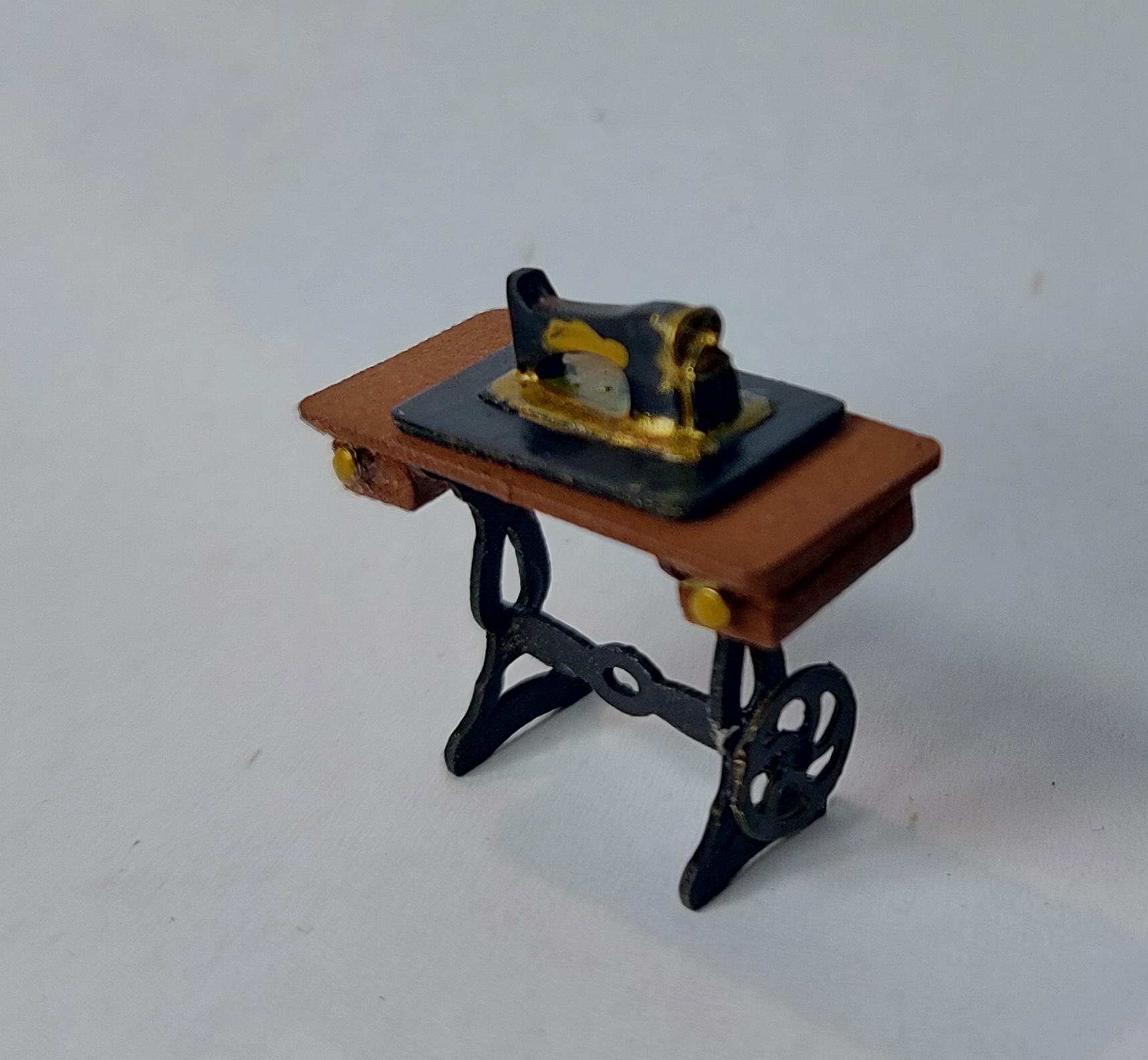 il y a quelques temps, j'ai eu la chance de tomber dans la collection créée par Petites Properties un kit en carton et impression 3D de machine à coudre au 1/48
