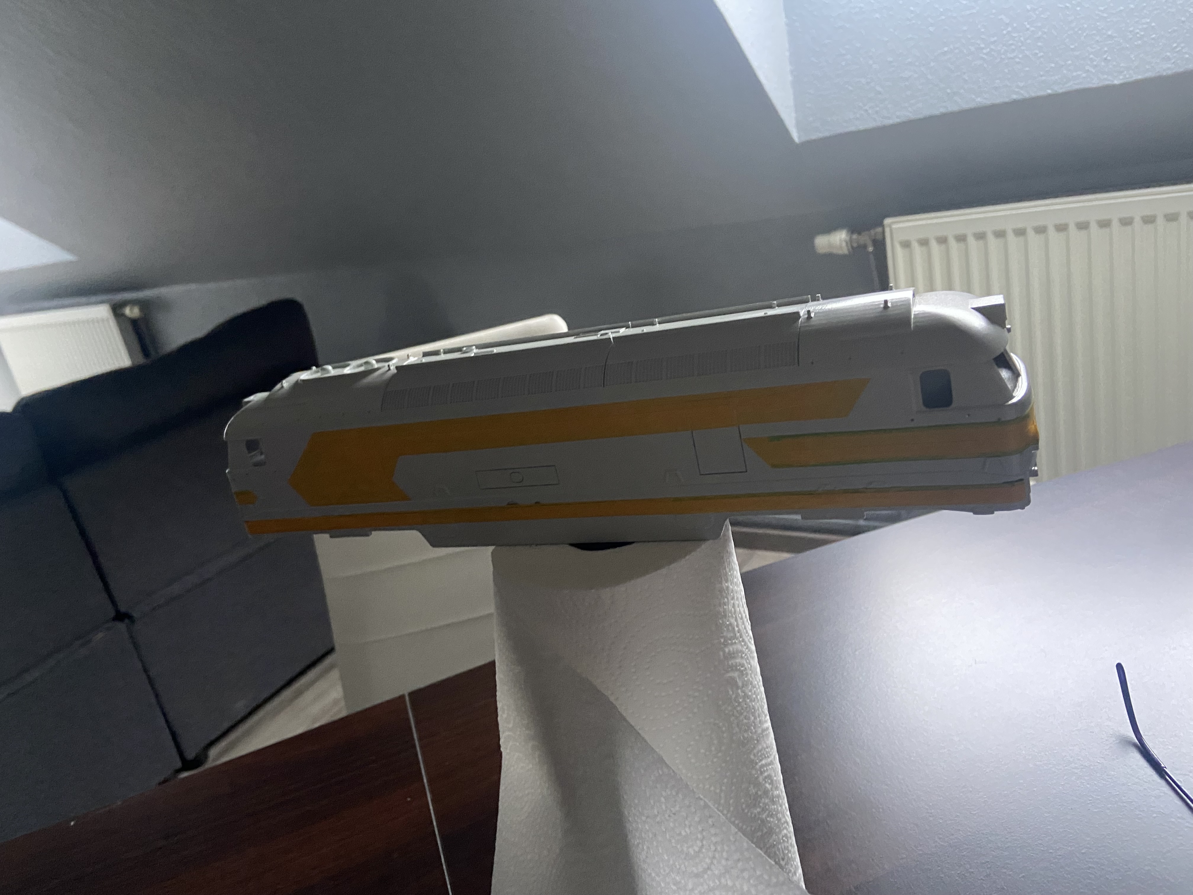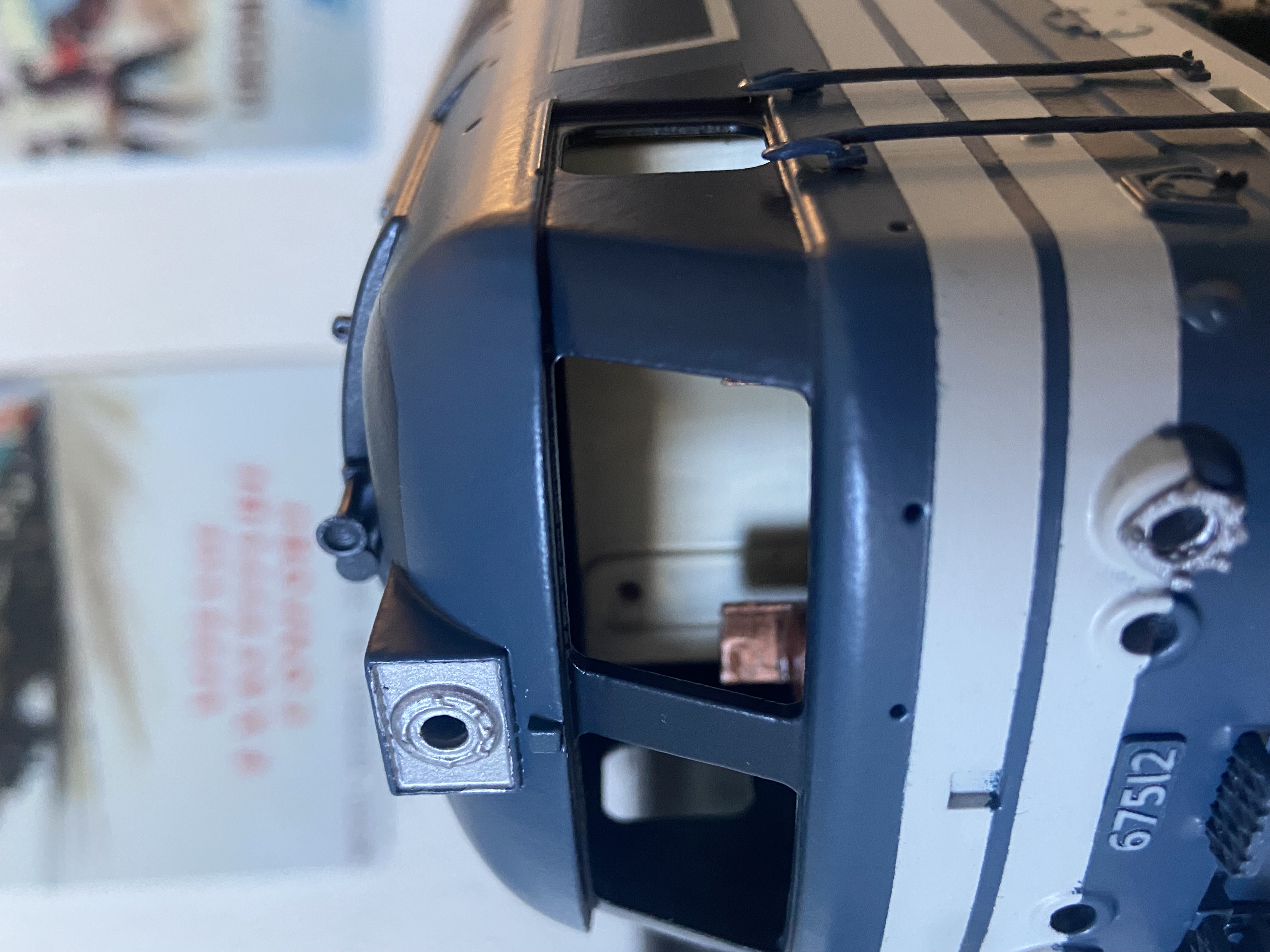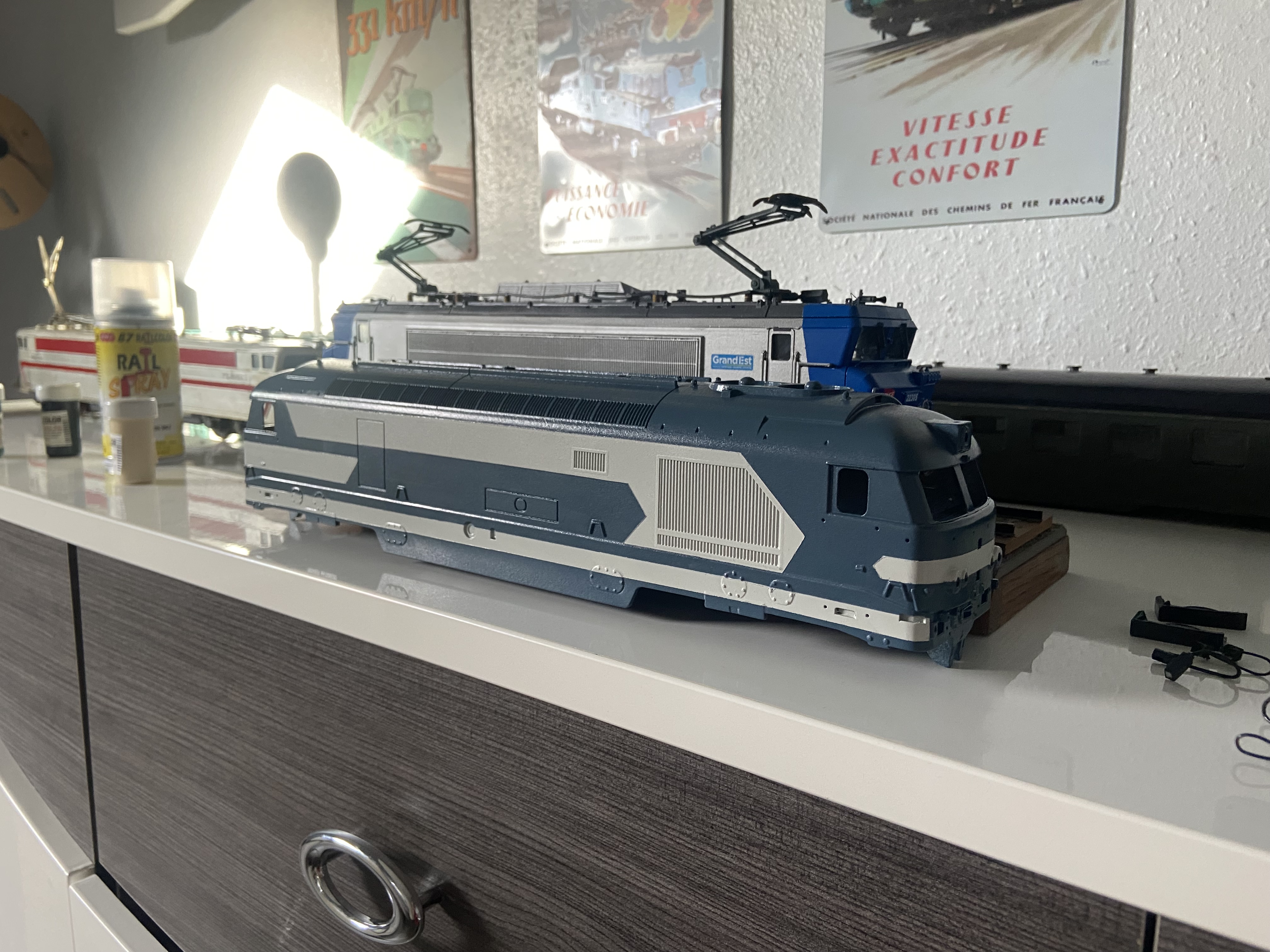 Quelques retouches de peinture au pinceau sur la caisse, assemblage définitif de l'ensemble, pose de toutes les pièces de détaillage, pose des vitrages..