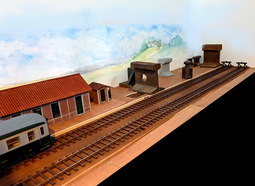 Pose d'une épaisseur supplémentaire pour délimiter la semelle de la voie, en vue du ballastage et de cacher les plaques en métal qui relient les modules !
