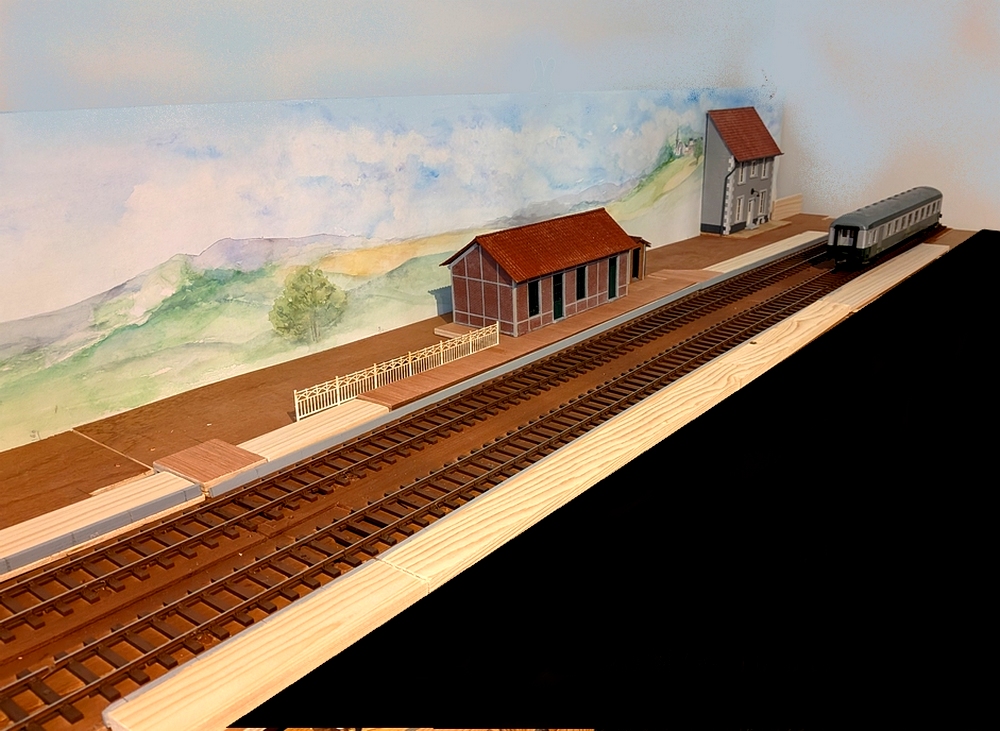 - route en asphalte le long de la gare pour arriver à la guinguette