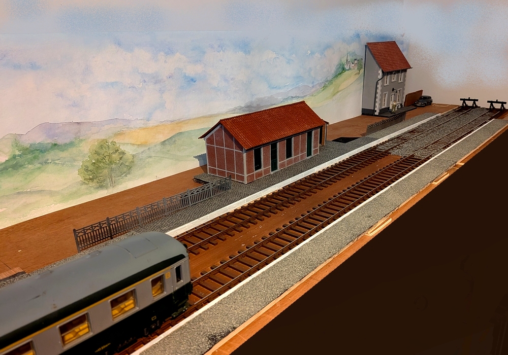 Gravillonnage des quais et fixation, début du ballast, mise en couleur des barrière de gare ...