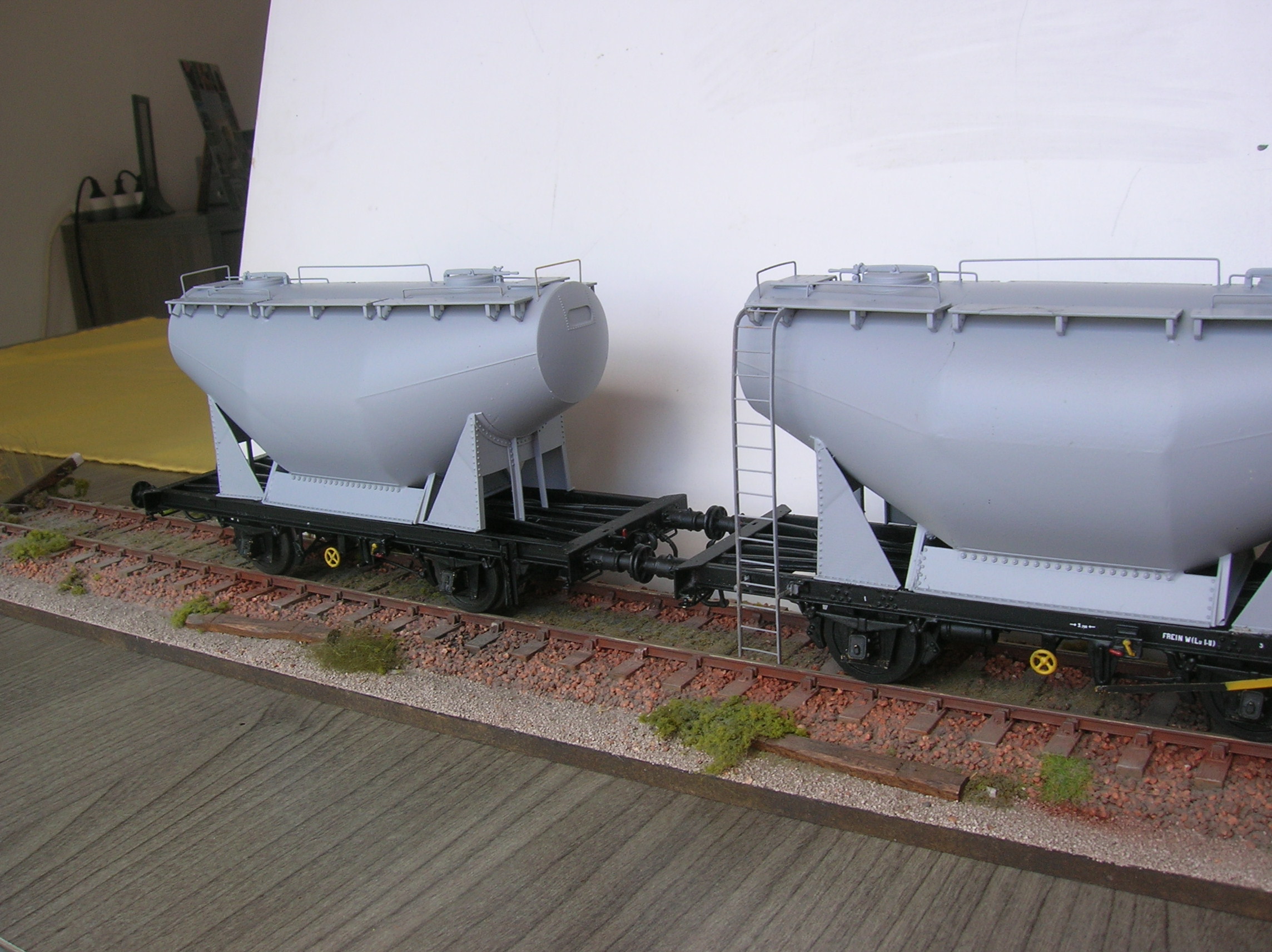 Ces wagons furent construit par le PLM en 1924 sur des châssis de récupération allemands au nombre de 5 si mes souvenirs sont bons, sur des plans italiens, 3 citernes à céréale à 2 a produit pulvérulent