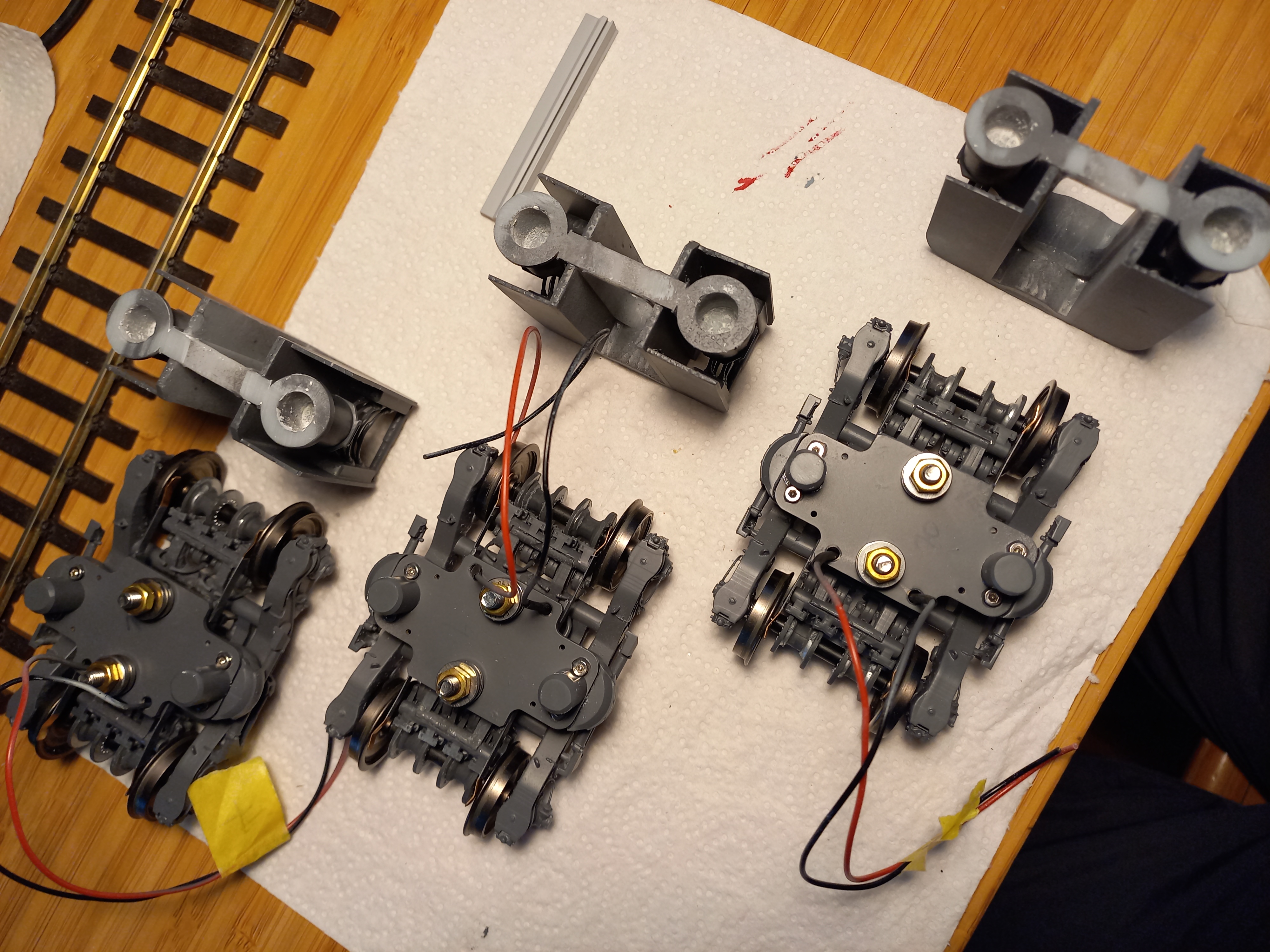 - Pour fixer l'anneau porteur sur les bogies ajouté deux cylindres qui permettent encore le démontage du bogie