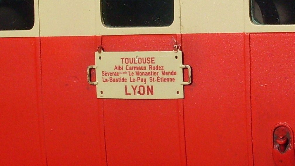 Allez on continue avec la pose d'un disque rouge sur le phare à l'une des extrémité, les plaques d’itinéraire, un début de patine, je ferais la suite les bogies et châssis quand j’aurais reçu de nouveau le vernis mat que j'ai allégrement renversé l'autre jour.
