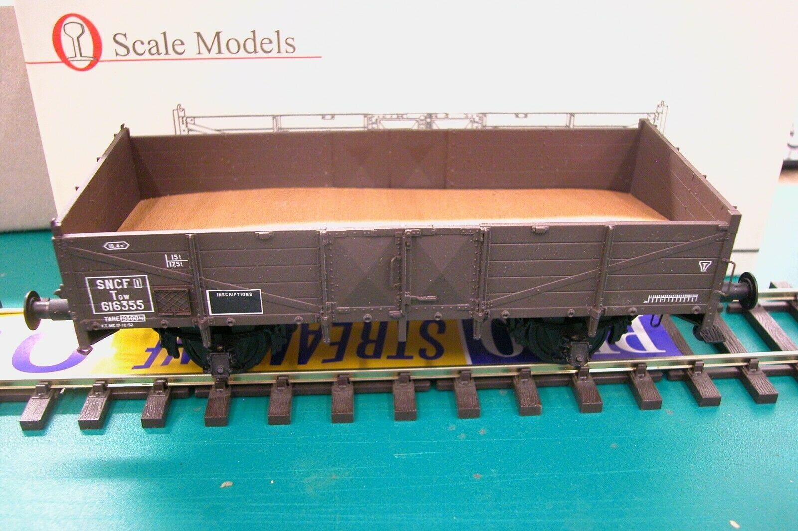 Ce tombereau "Halle" de 1910 utilise le même châssis que la citerne OSM dans sa version avec passerelle ou guérite de frein, et existe aussi en version courte sans passerelle. Des essieux à rayons et des tampons anciens sont également proposés sur certaines versions.