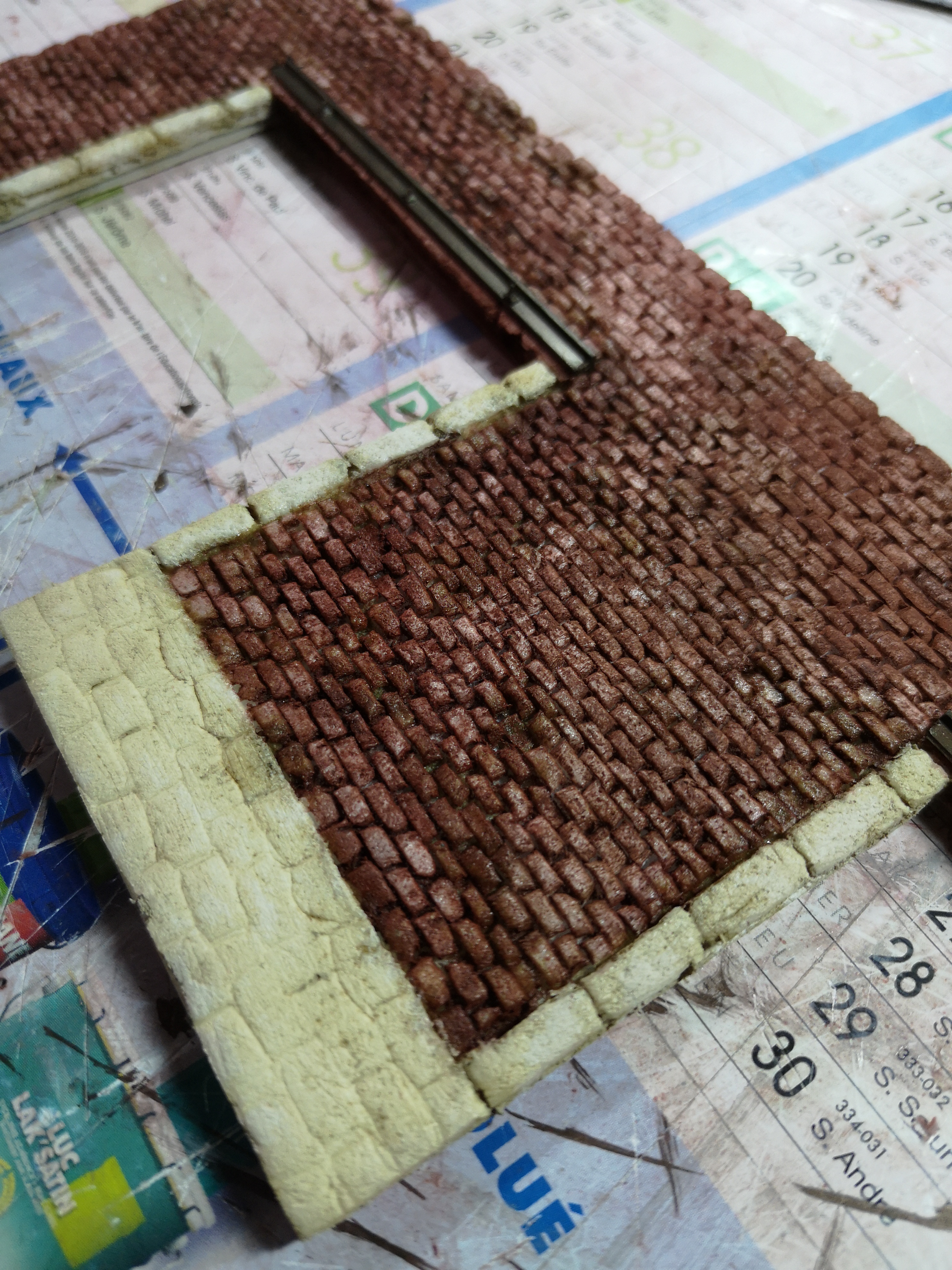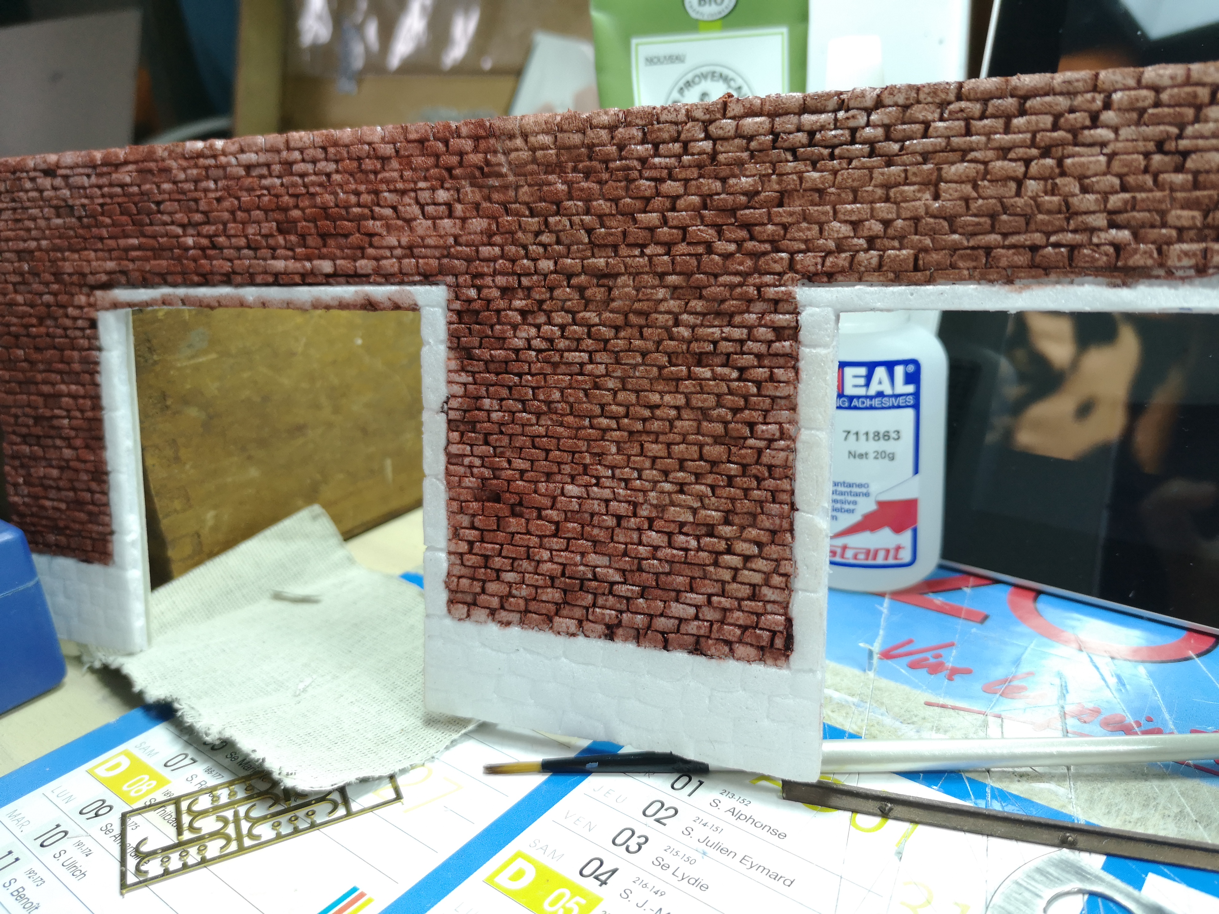 Alice j'ai réalisé sur mon module de Noël des mûrs en briques sur DEPRON, les joints sont très blancs mais dans la réalité cela existe aussi :!: