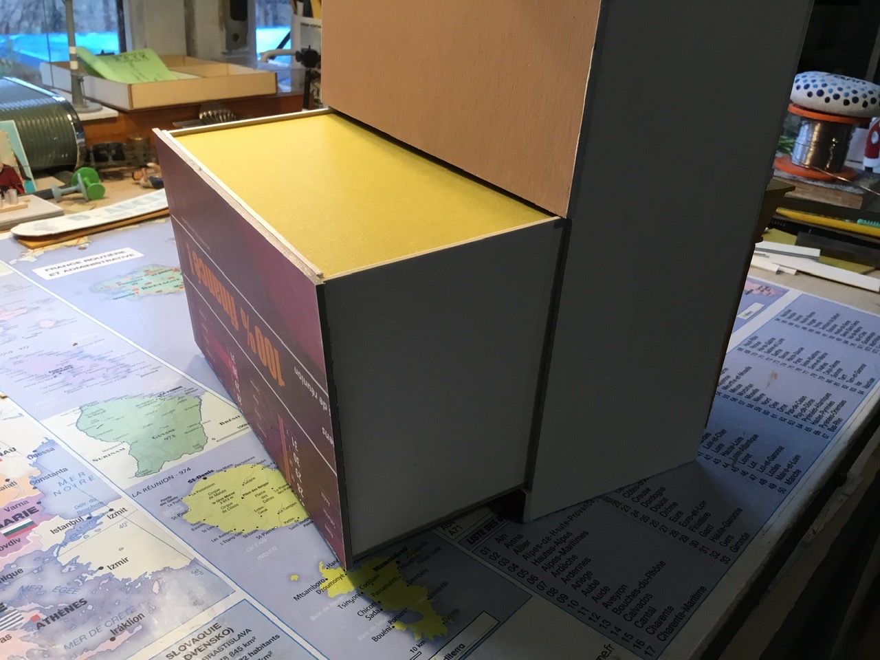 Voici donc la boîte d’allumettes du haut avec son papier peints (merci a mon fournisseur du 91 qui se reconnaîtra