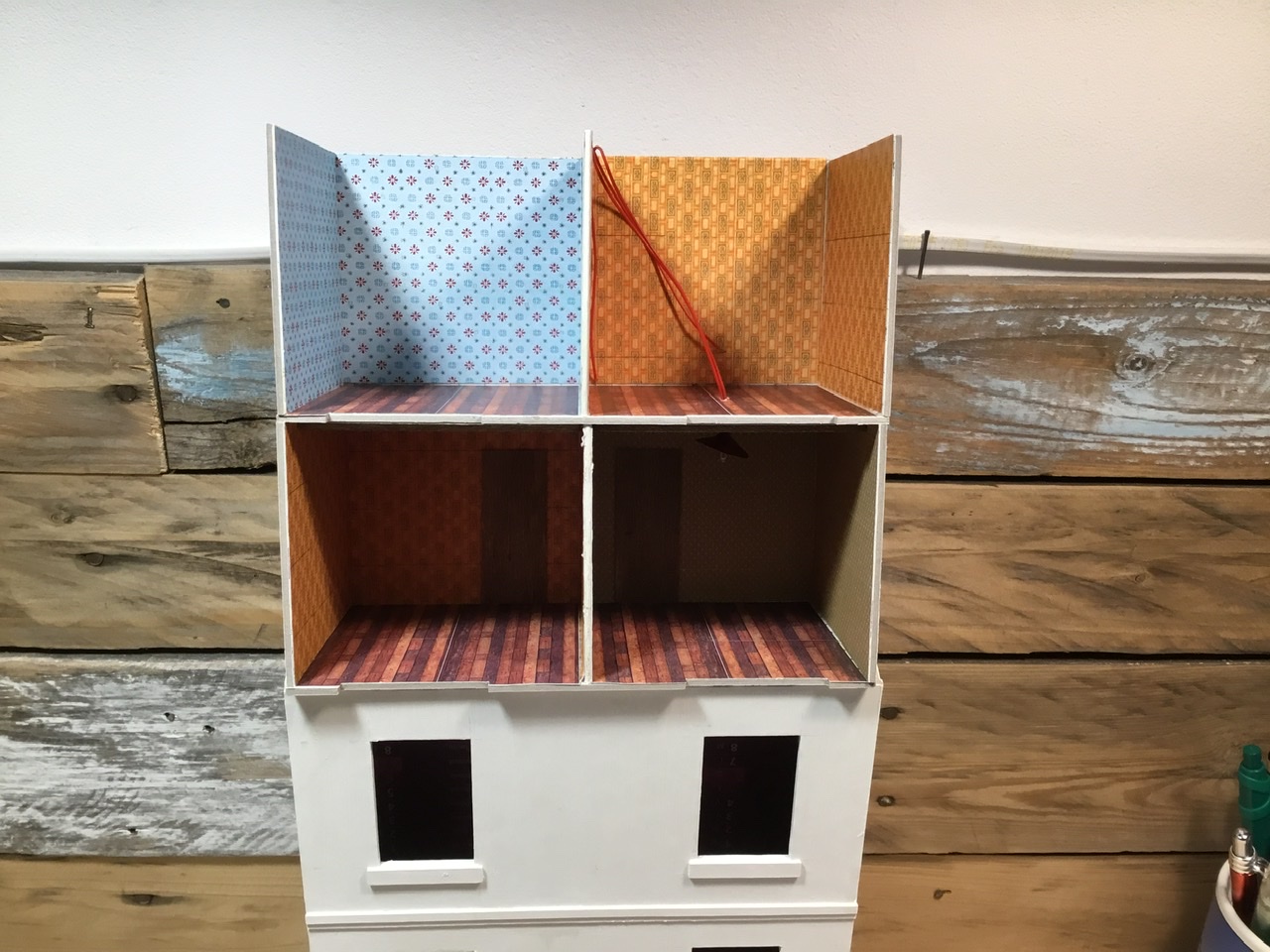 Je vous avais parlé de mon histoire de papier peint...et bien ça avance. Pour commencer j’ai bouclé mon histoire de batiment “boîte d’allumette”. Je veux pouvoir accéder aux intérieurs pendant et après le gros œuvre en particulier parce que c’est Alice qui fait tout le boulot d’intérieur. Il faut que soit suffisamment rigide pour durer dans le temps et bien ajuster pour coulisser pile poil.