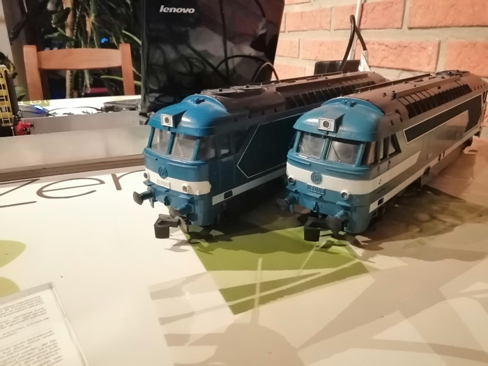 Il me restait un décodeur Esu 5 XL prévu pour le LGB, on l'a placé dans la BB a double moteur ( 2 demi BB Lima) on l'a testé avec une centrale Marklin de base, et ça fonctionne ! pas d'essai en charge pour le moment :siffle: