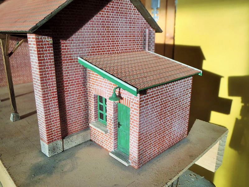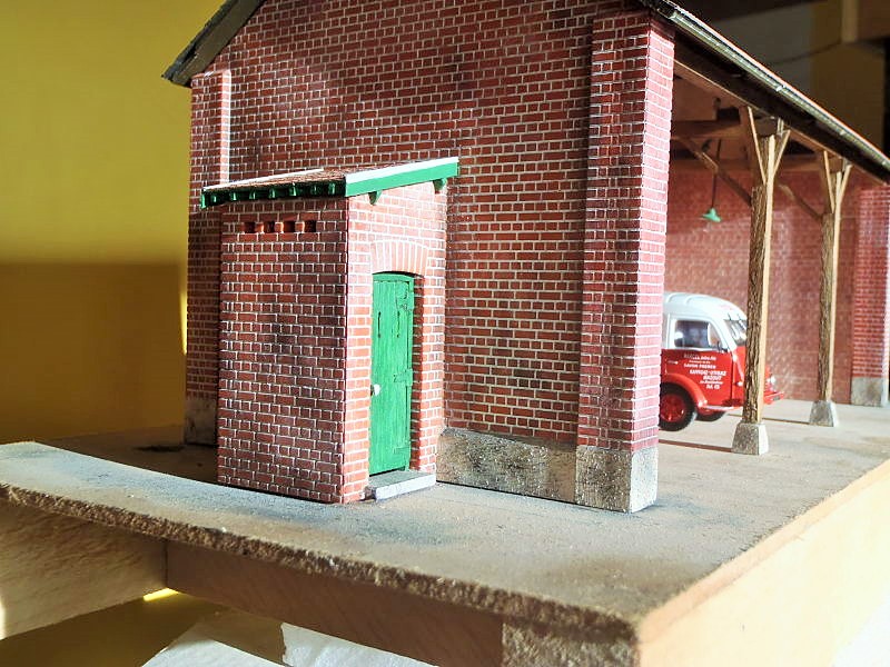 La voie déviée au rayon le plus faible va desservir un embranchement privé qui, Nord oblige, ne peut être qu'un charbonnier ... ou plus exactement un négociant en combustibles, à l'orée des années 60. Le parc automobile est abrité sous un hangar issu du kitbashing d'éléments modulaires en plastique commercialisés par Addie-Modell dès 2015, eux-même issus d'un kit de remise / manufacture vendu sous différentes marques au début des années 2000.