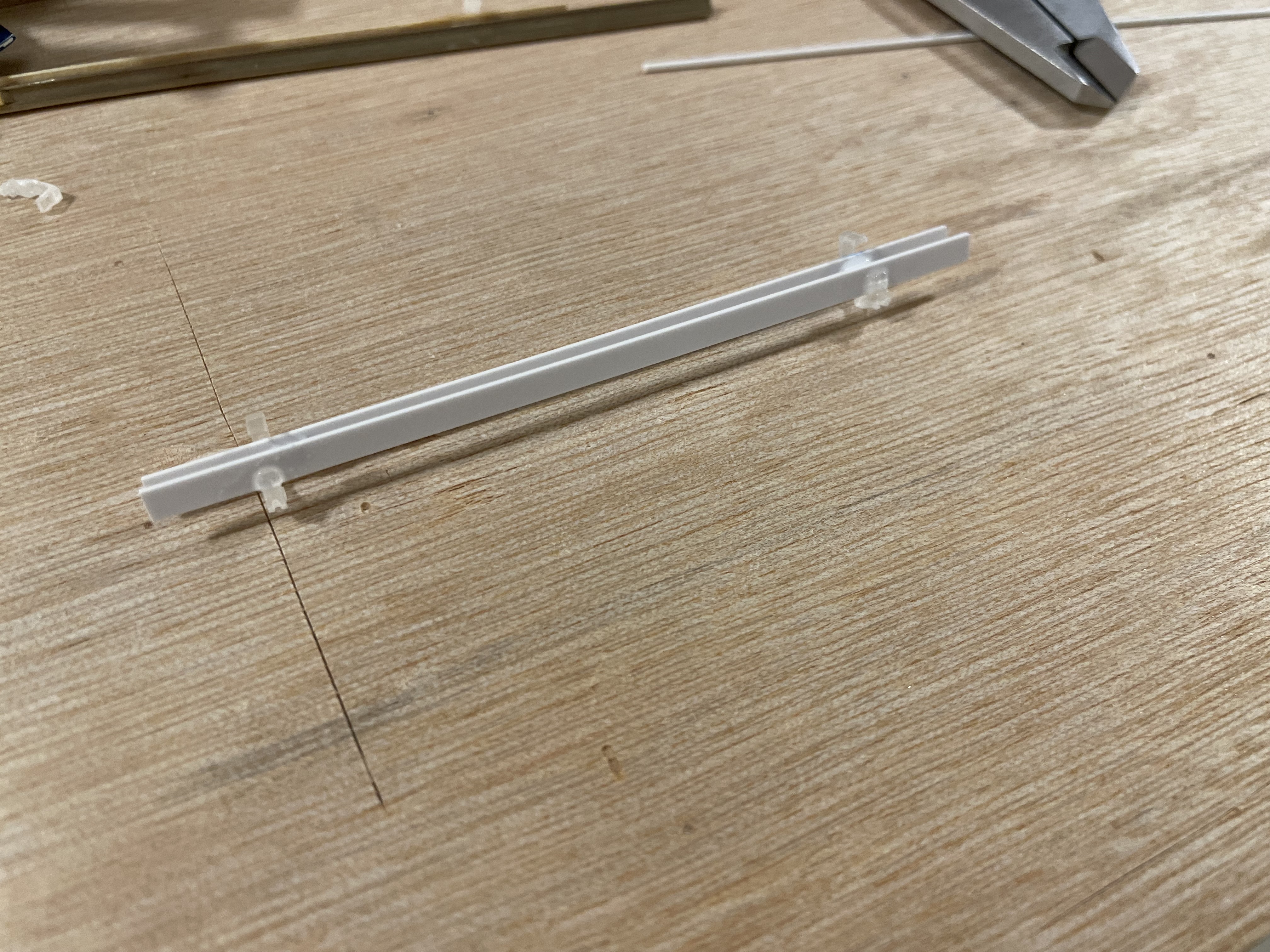 Pas totalement satisfait du résultat j'ai testé la solution plasticarte de 3,2 x 0,75 mm pour les planches latérales.