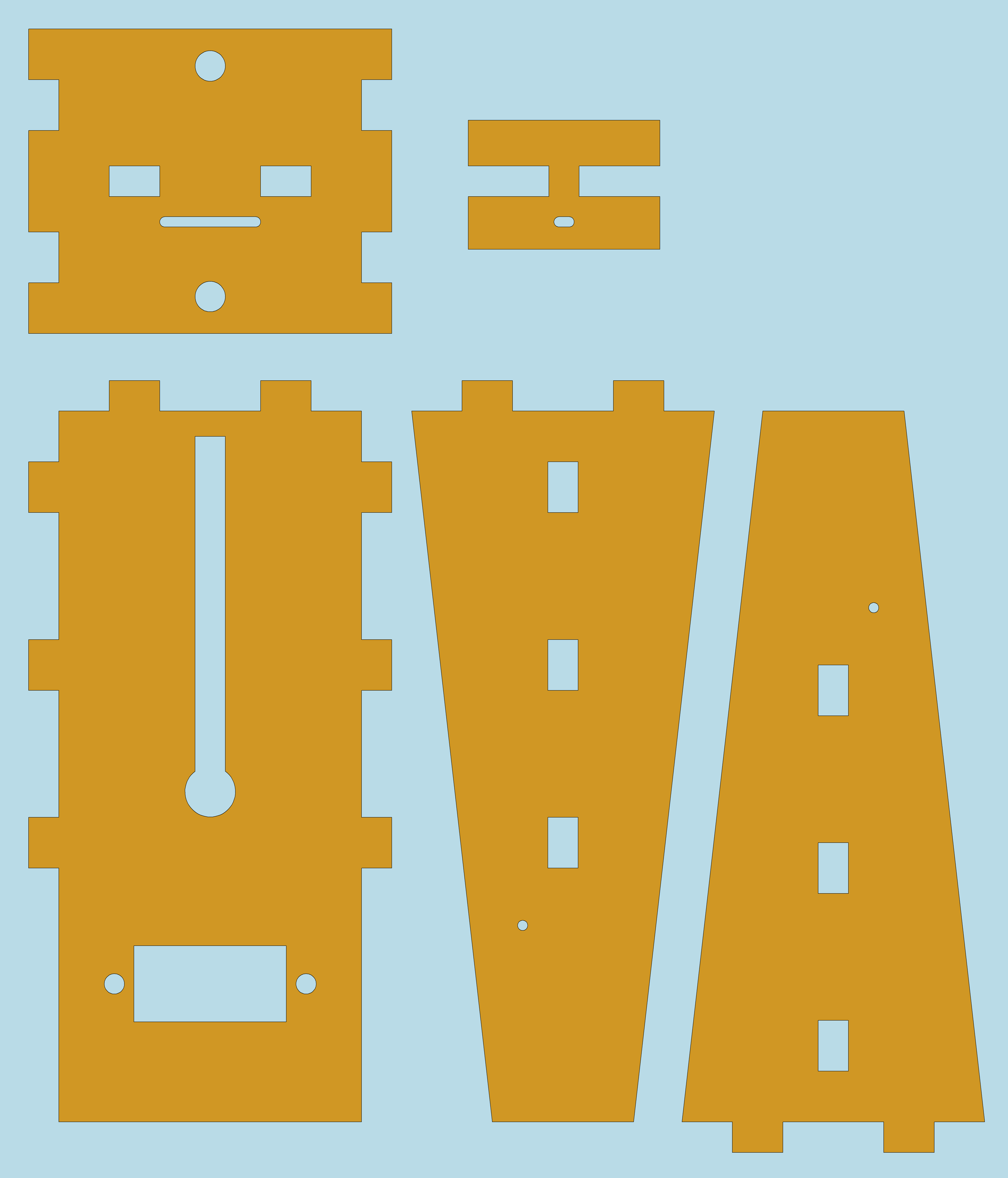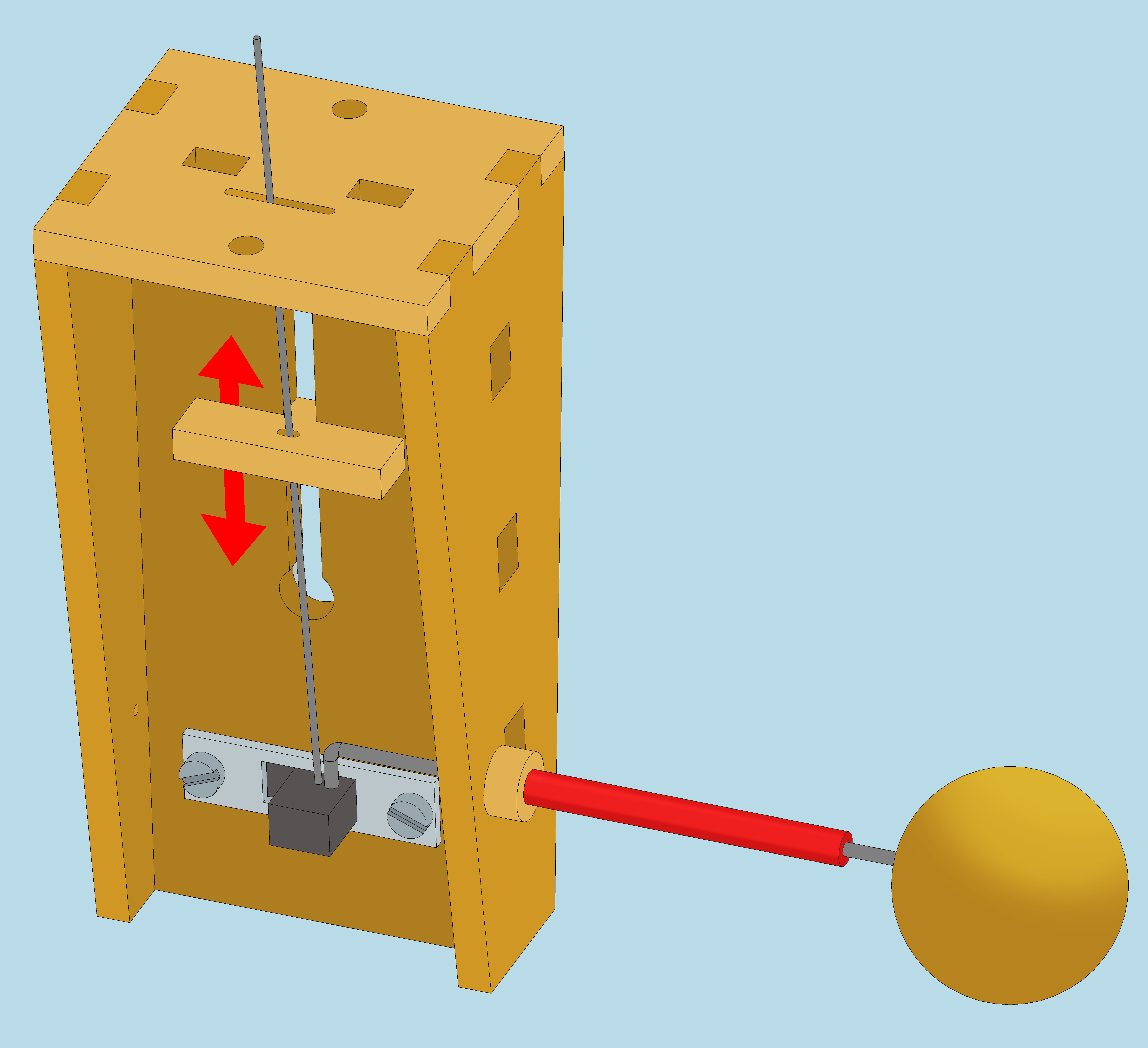 Ce système est composé de cinq plaques MDF de 3mm, d’un interrupteur à glissière standard et d’une tige en acier de 0.5mm de diamètre, de deux vis mécaniques et d’une boule en bois percée.