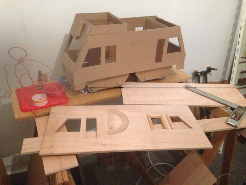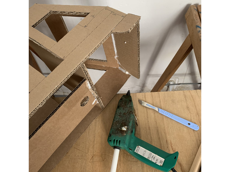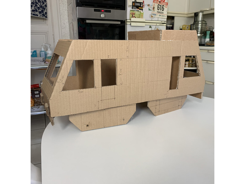 D'abord une petite maquette en carton collée grossièrement pour bien évaluer les proportions.