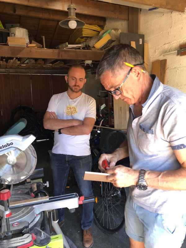 Avant assemblage, les différents éléments sont tous poncés à la main avec un papier-de-verre /400, ce qui permet aussi d'arrondir tous les champs et tous les angles.