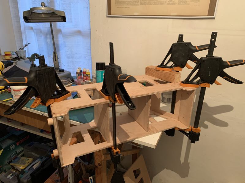 Le montage est très classique collé/vissé en ayant soin de pratiquer un avant-trou pour chaque vis pour éviter l'éclatement du bois.
