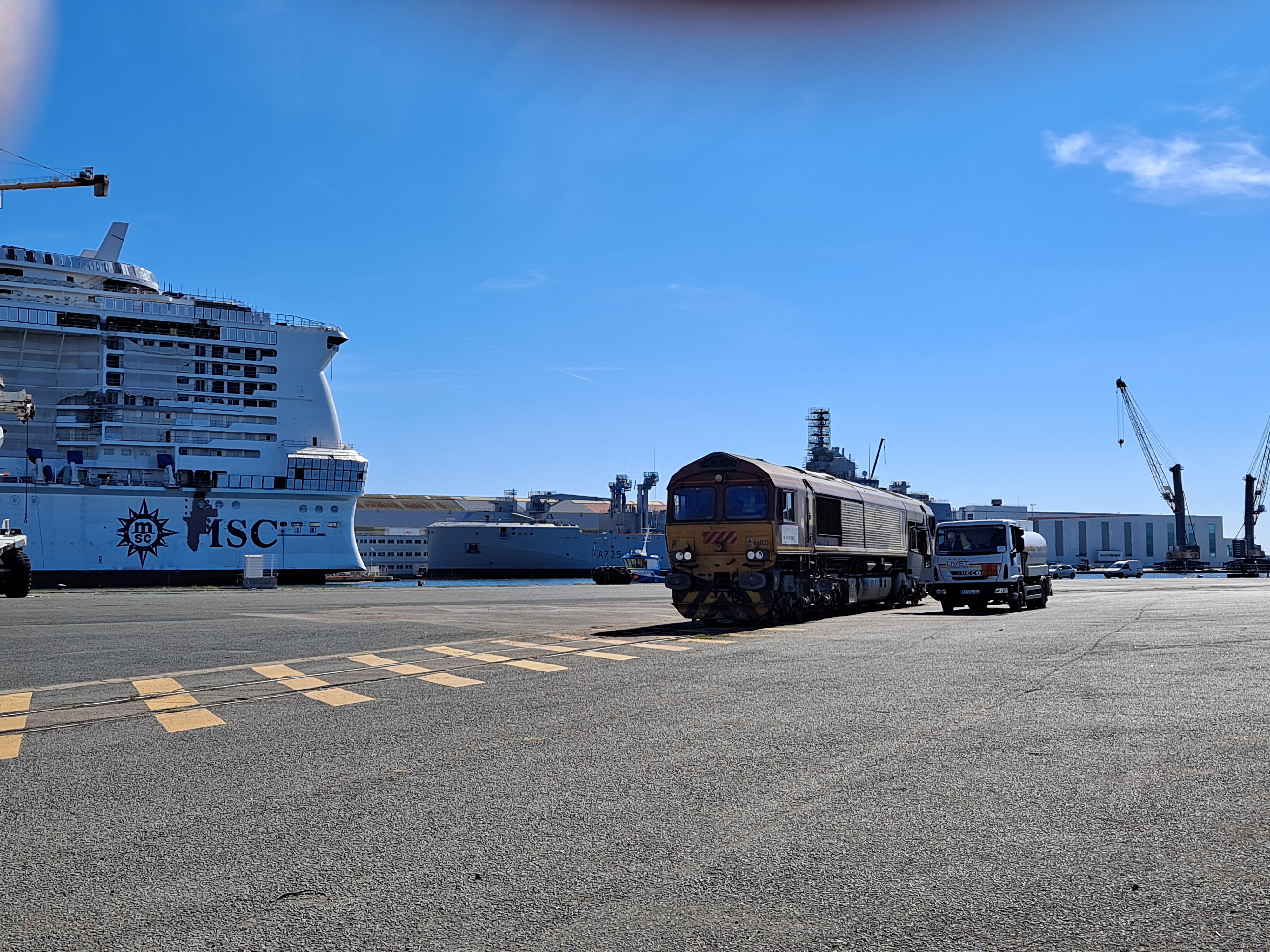 Photos prises hier midi dans le port de Saint Nazaire. Peut-être une scène à reproduire pour les futurs propriétaires de Class 66 !!