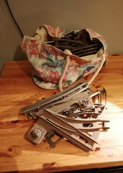 Caisse ?? bé oui ... c'est comme ça que j'ai commencé : dans les années 1980, sur une brocante, une caisse de vieux rails rouillés, je regarde, et le vendeur veut s'en débarrasser, et pour 10 frs belges ( 25 cent !!) j'ai la caisse, sous le regard réprobateur de Mme Pélican !!