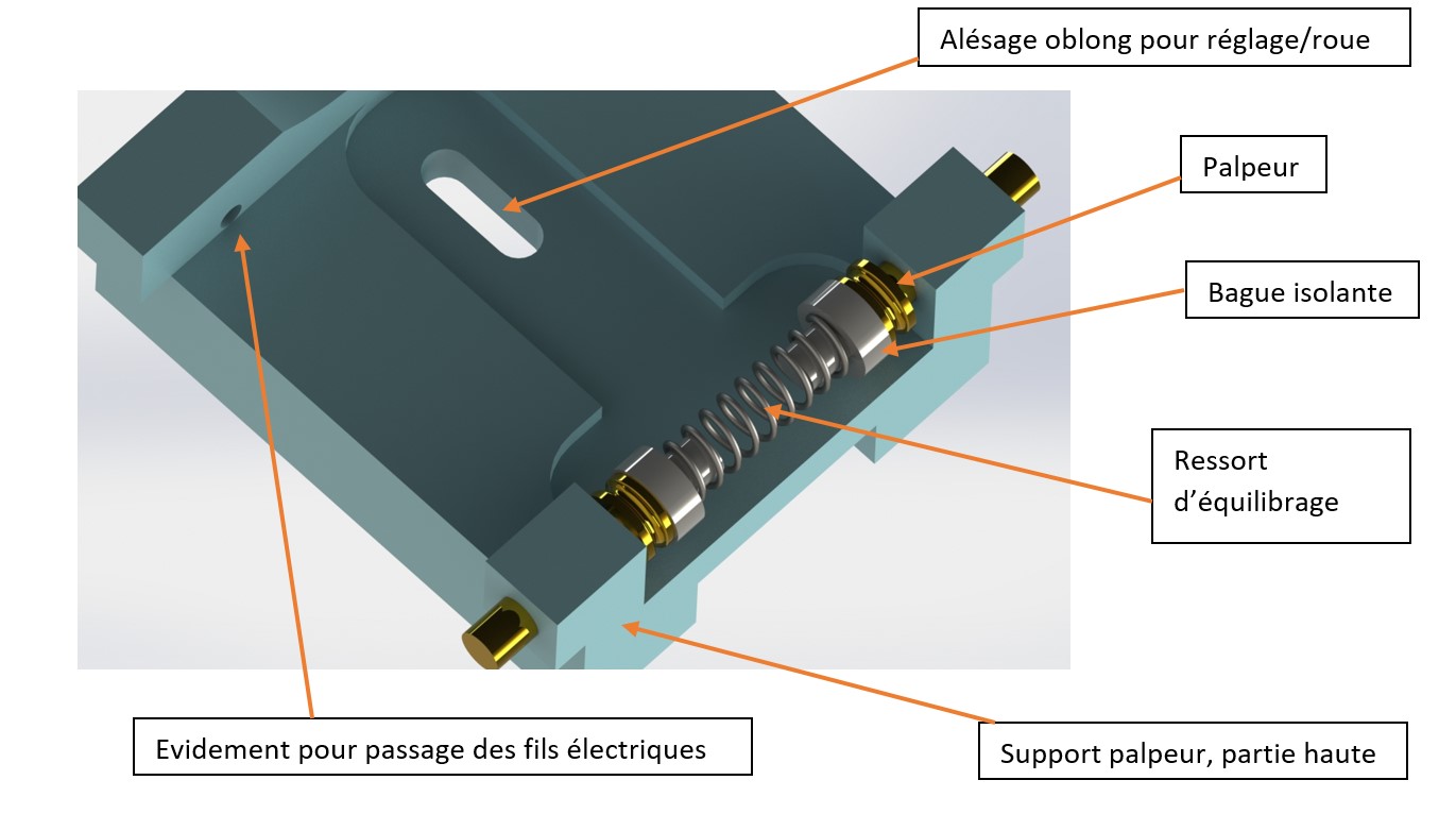 - Et une liaison isolante entre les palpeurs et le ressort.