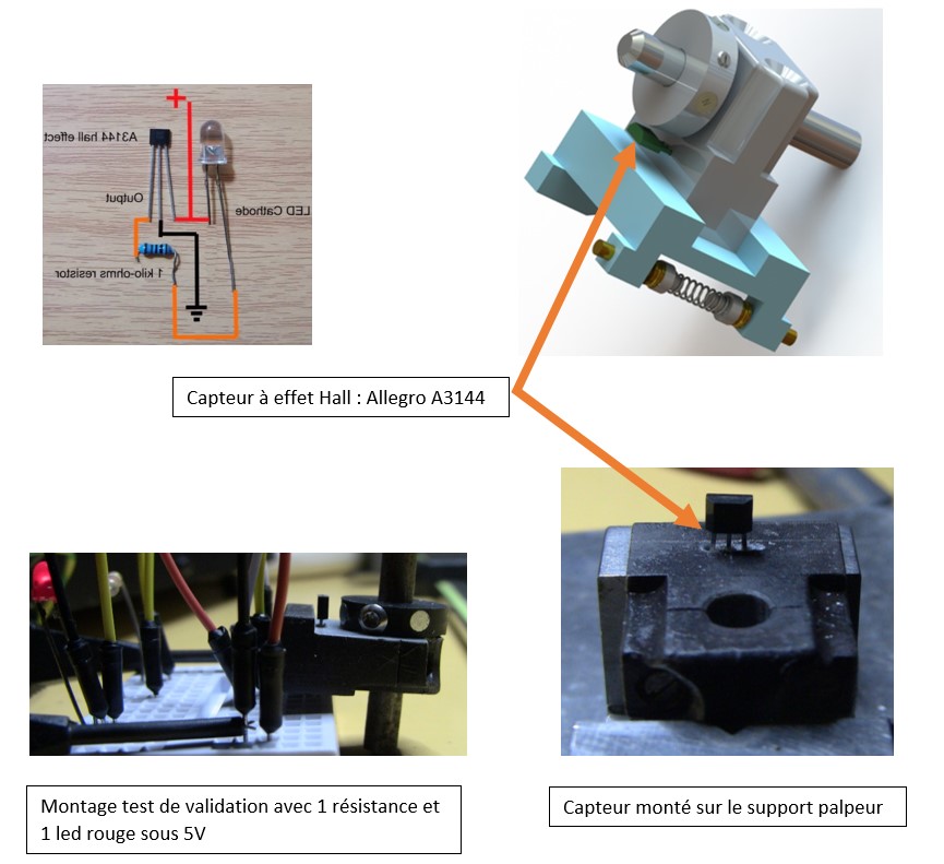 Un récepteur Allegro A3144 sera incorporé sur le support palpeurs.